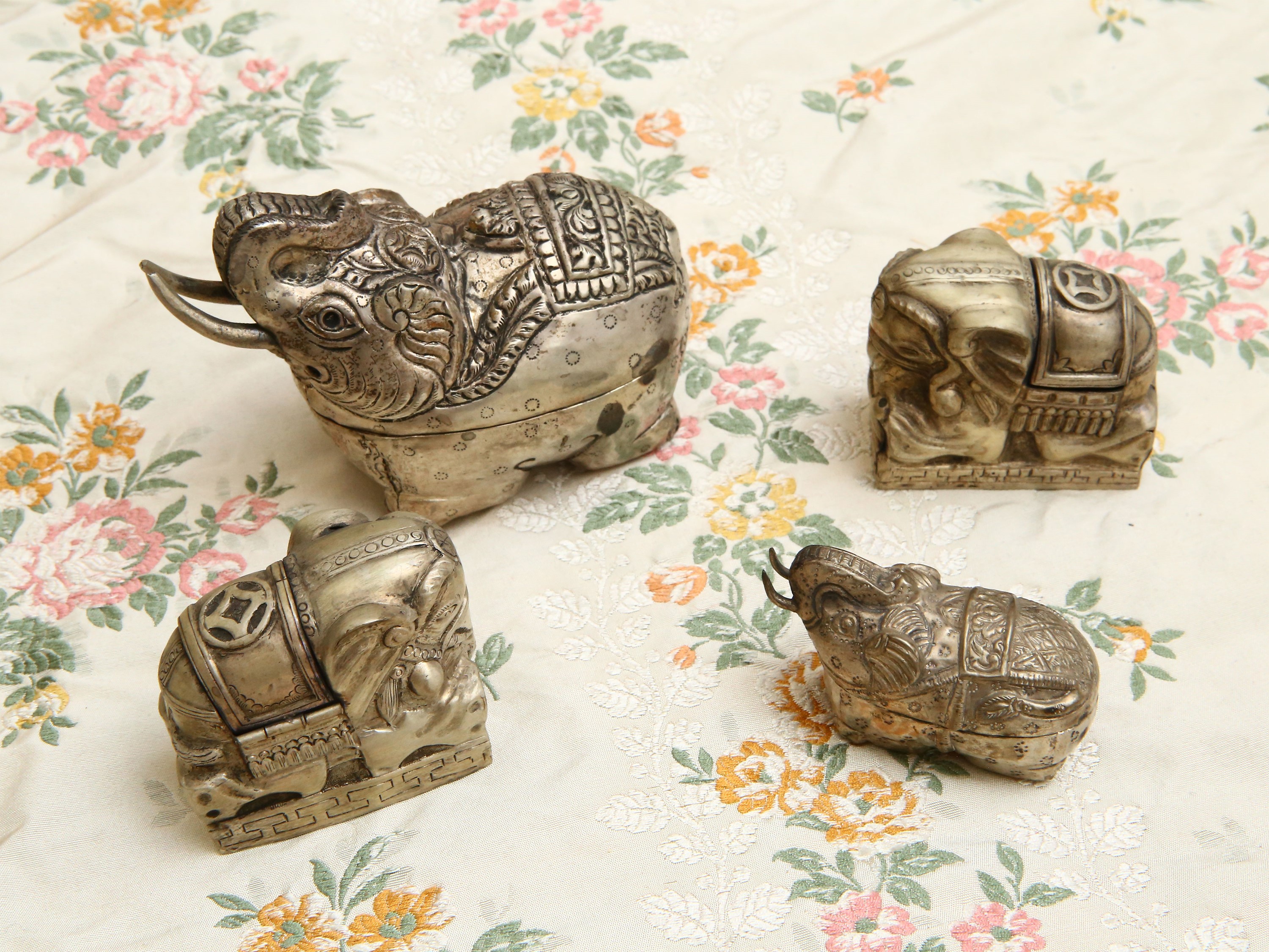 Quattro piccole scatole animalier in argento