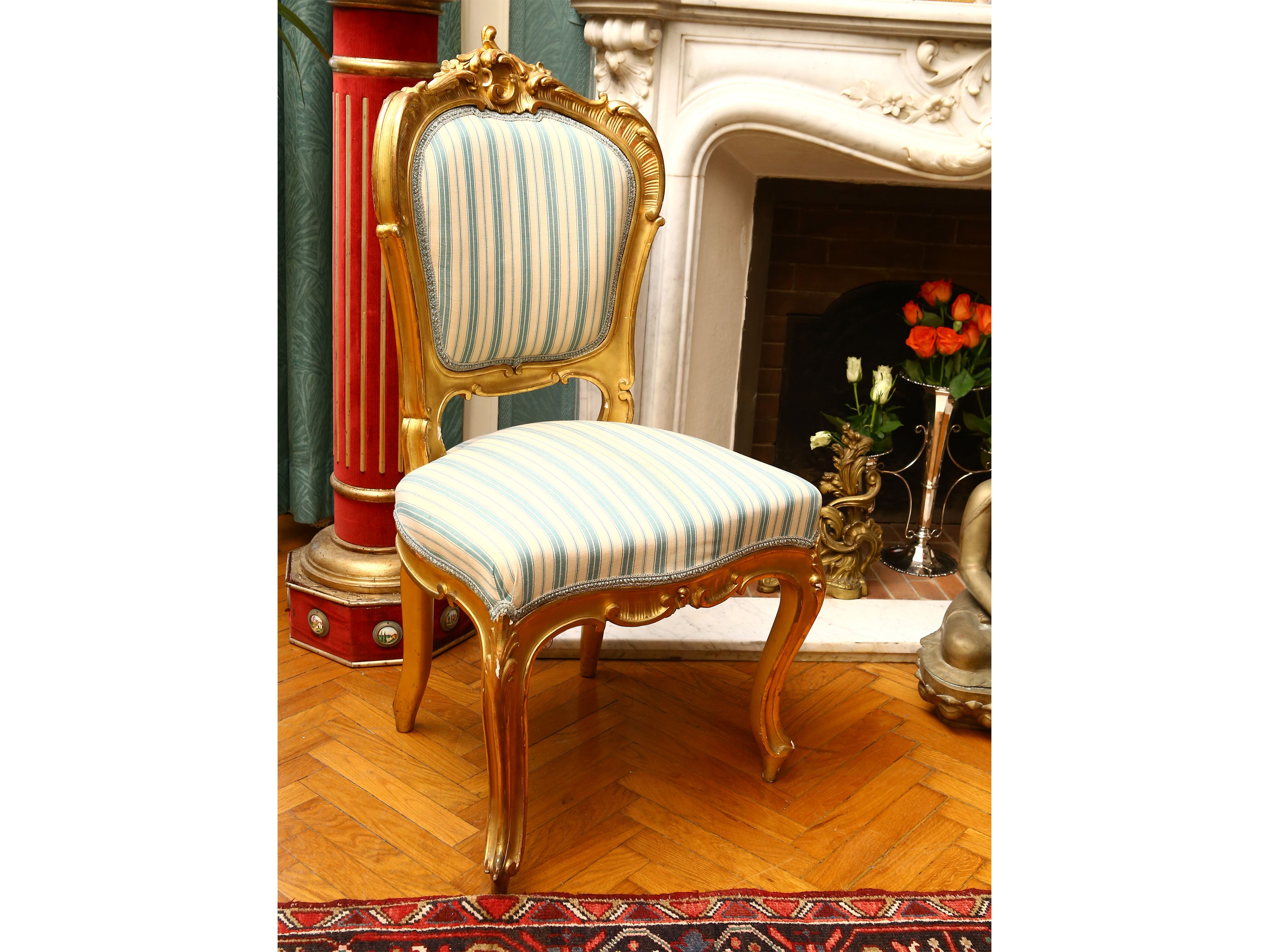 seconda metà del XIX secolo schienale sagomato realizzato a volute, gambe anteriori mosse, rivestite in tessuto rigato nei toni del celeste