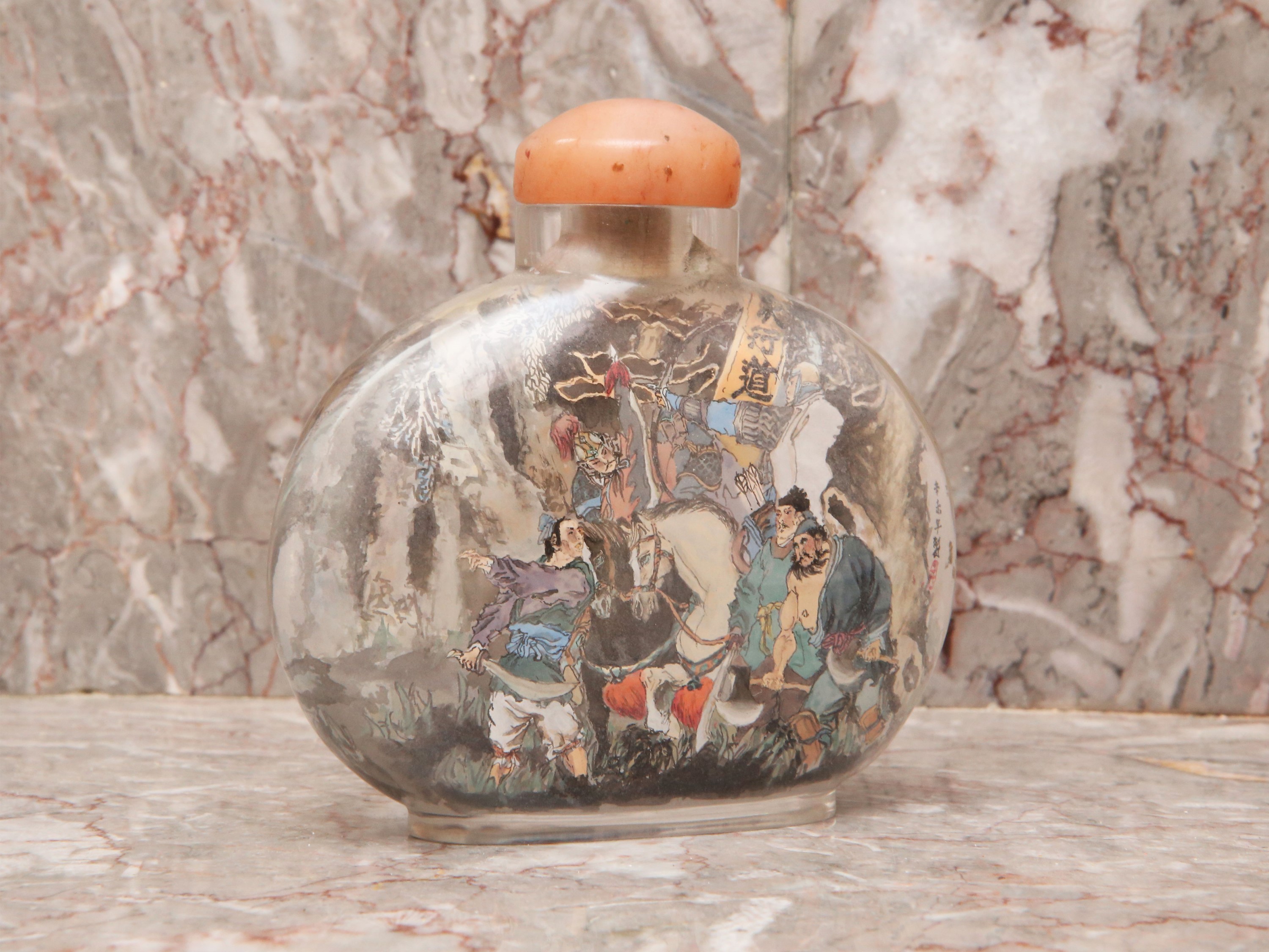 Cina dipinta all'interno con scena di battaglia, tappo in pietra dura, lievi difetti
