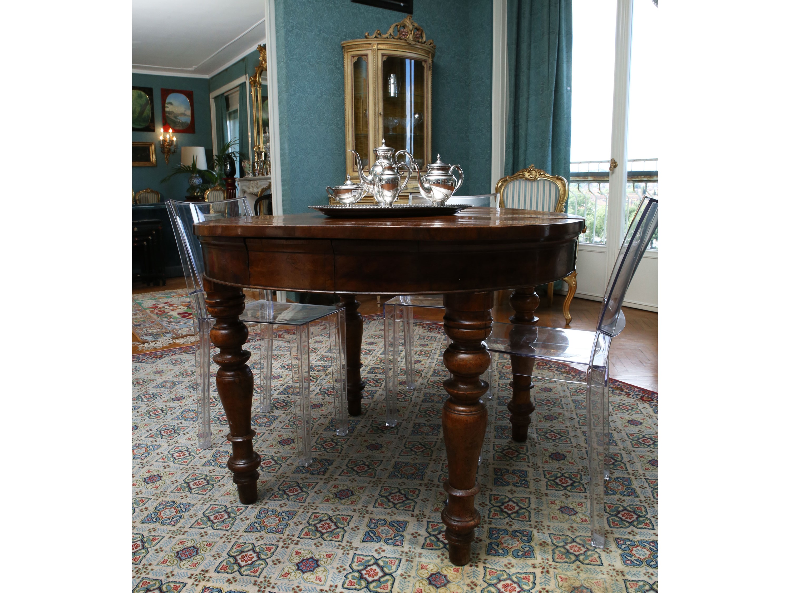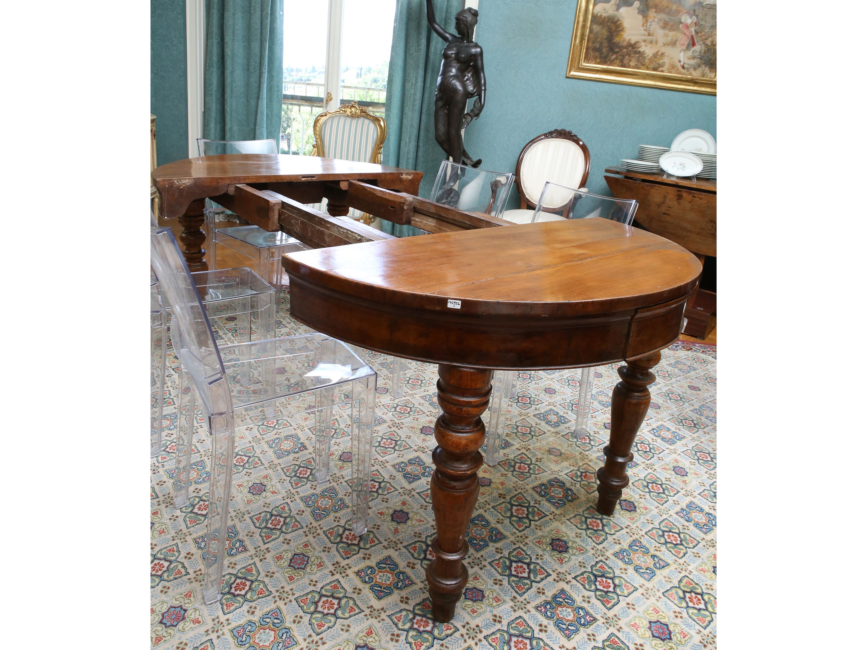 seconda metà del XIX secolo allungabile, piano circolare, due piccoli cassetti nella fascia, gambe tornite, alcuni difetti, corredato di una piccola prolunga rustica