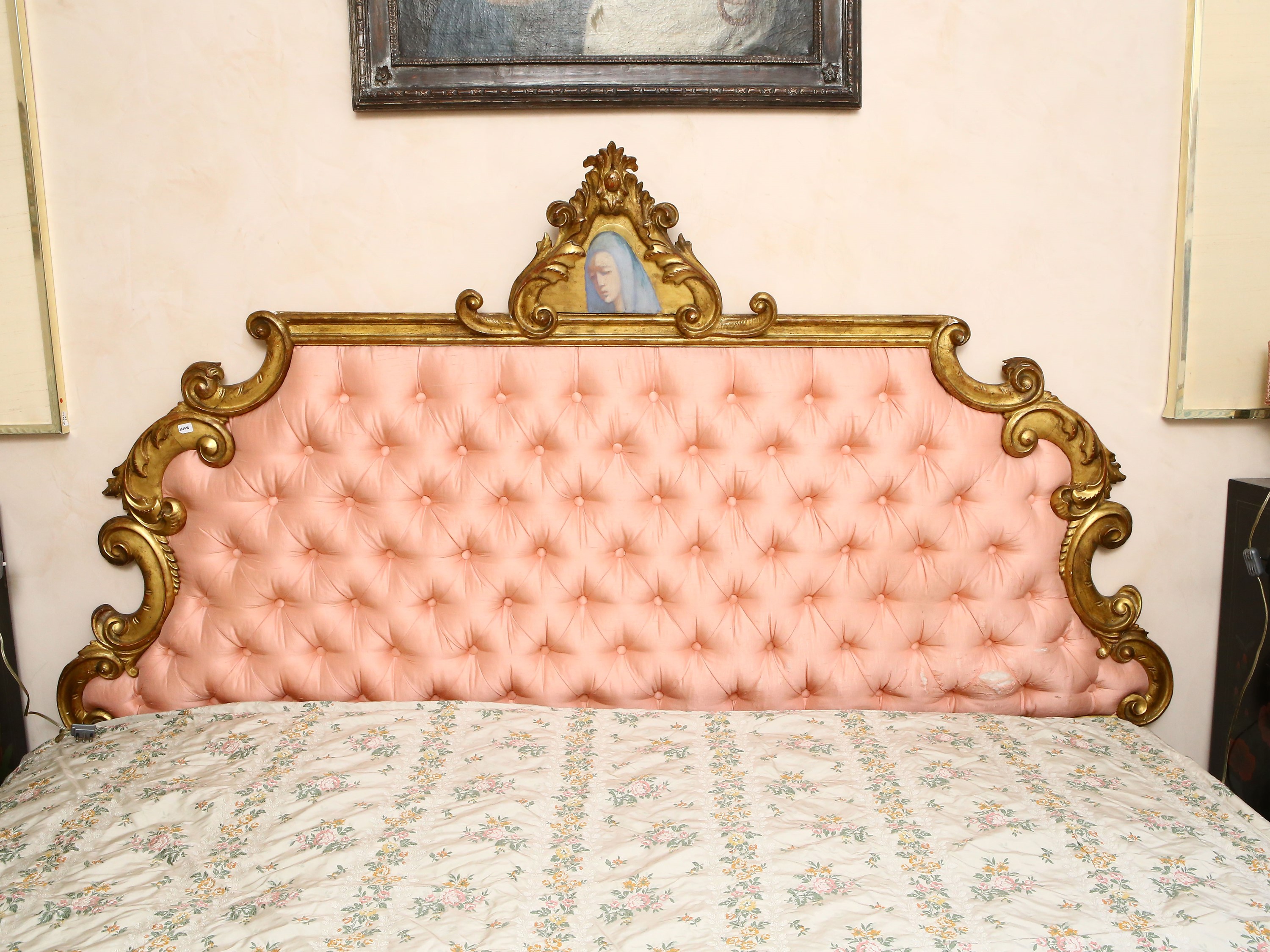 Testiera per letto matrimoniale in legno intagliato e dorato