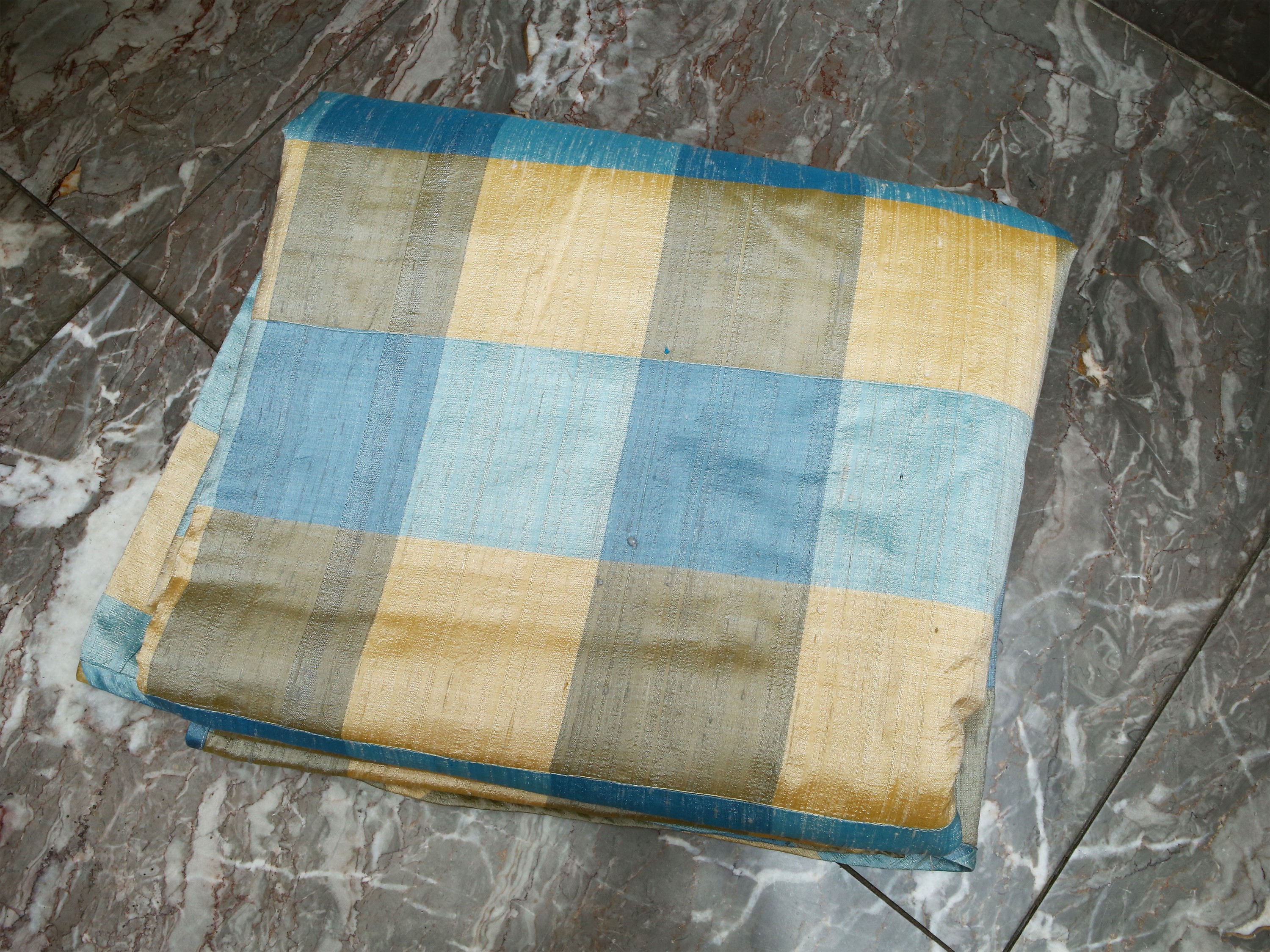 seconda metà del XX secolo tessuto a scacchi turchesi e beige, foderata di tela, lievi difetti