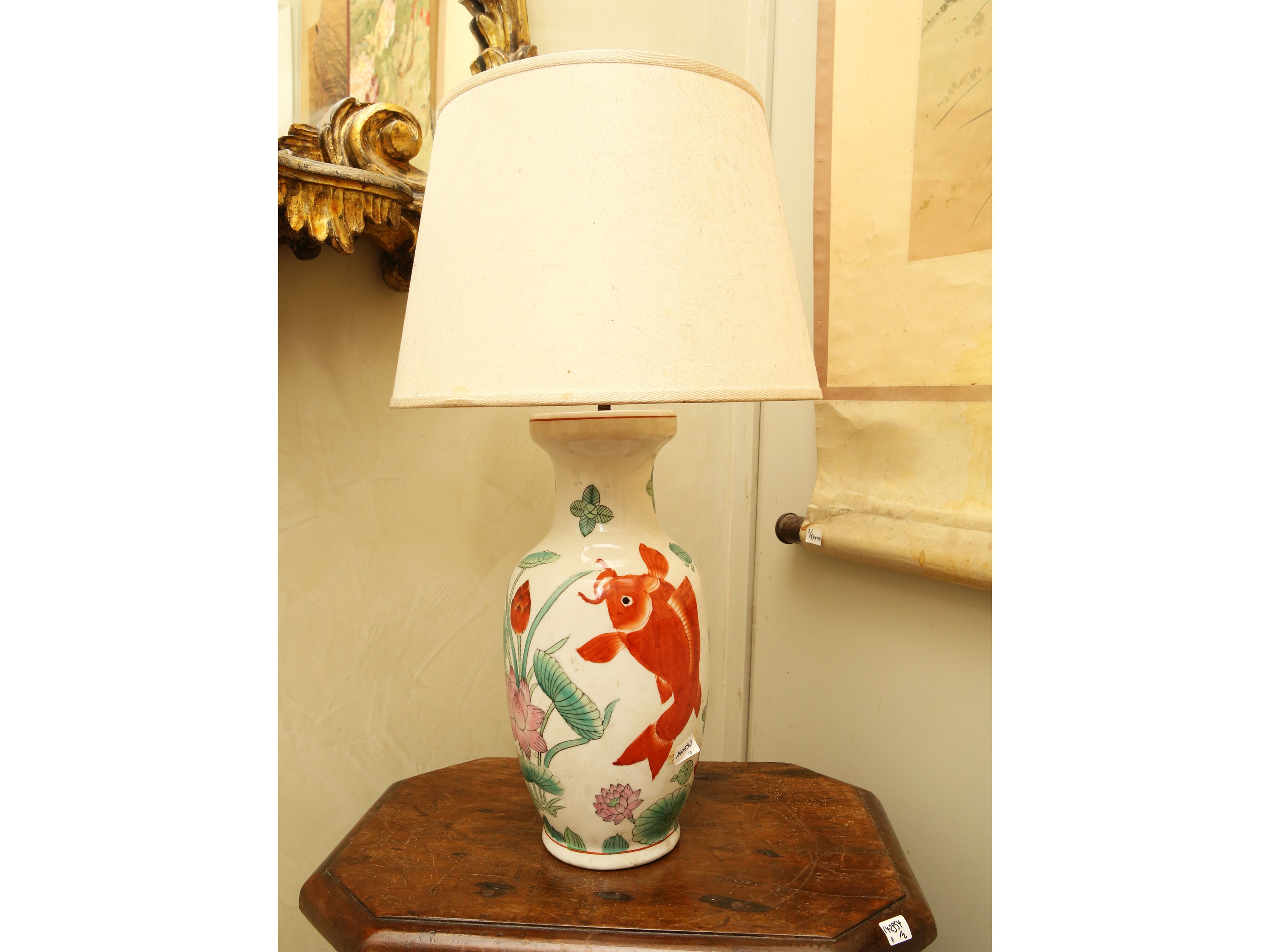 Cina decorato con pesci e fiori di loto, montato a lume