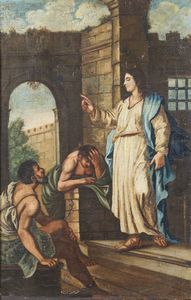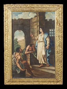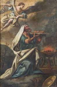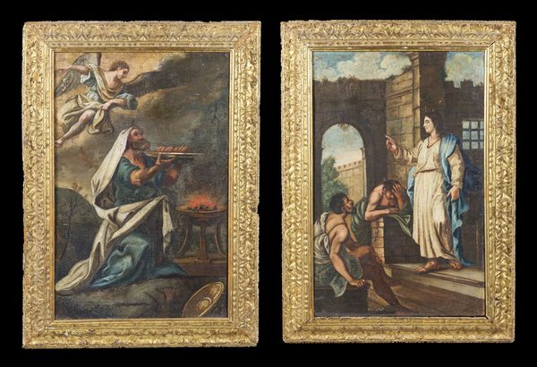 Coppia di dipinti raffiguranti Elia e l'angelo e lezione ai Farisei