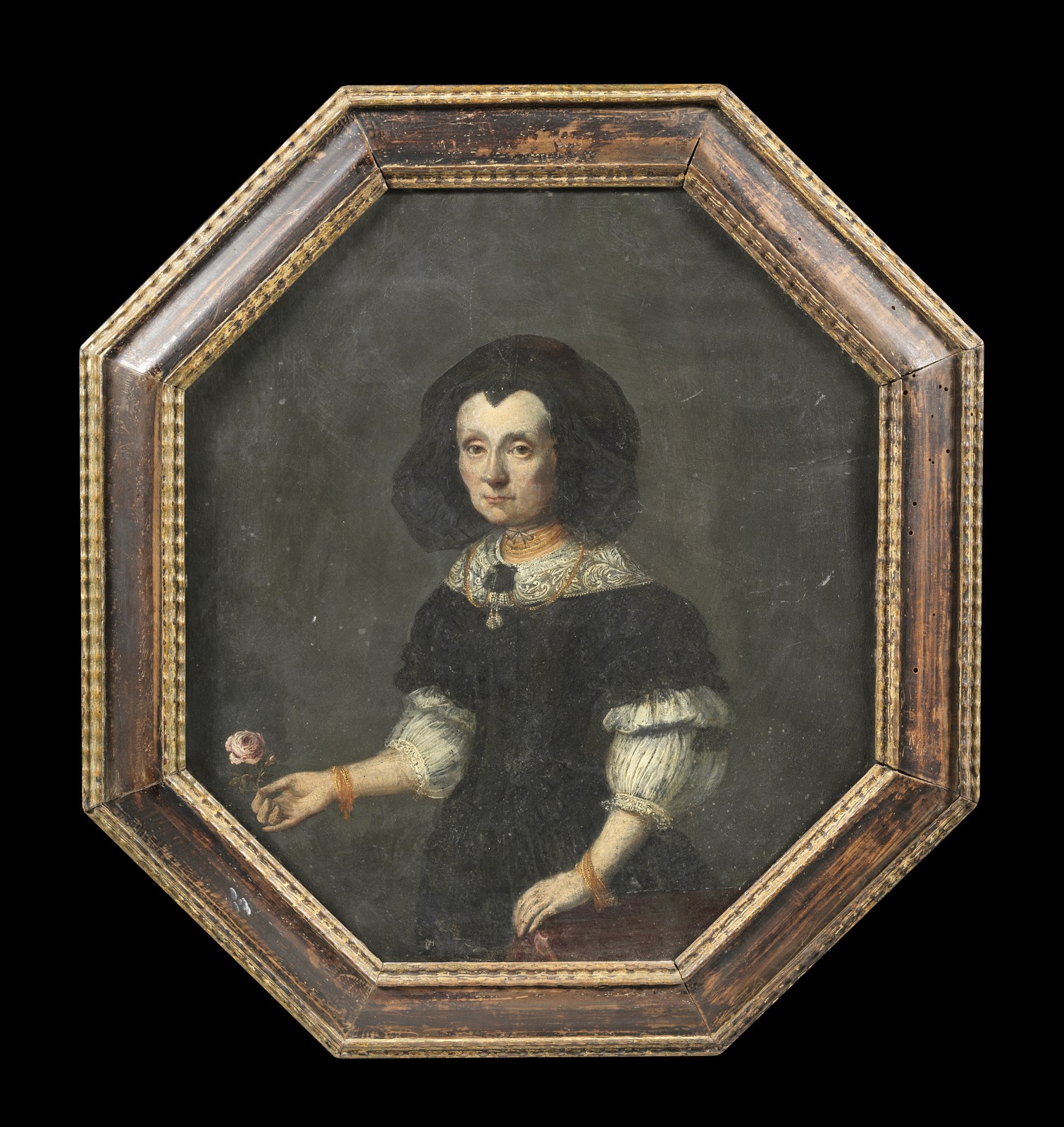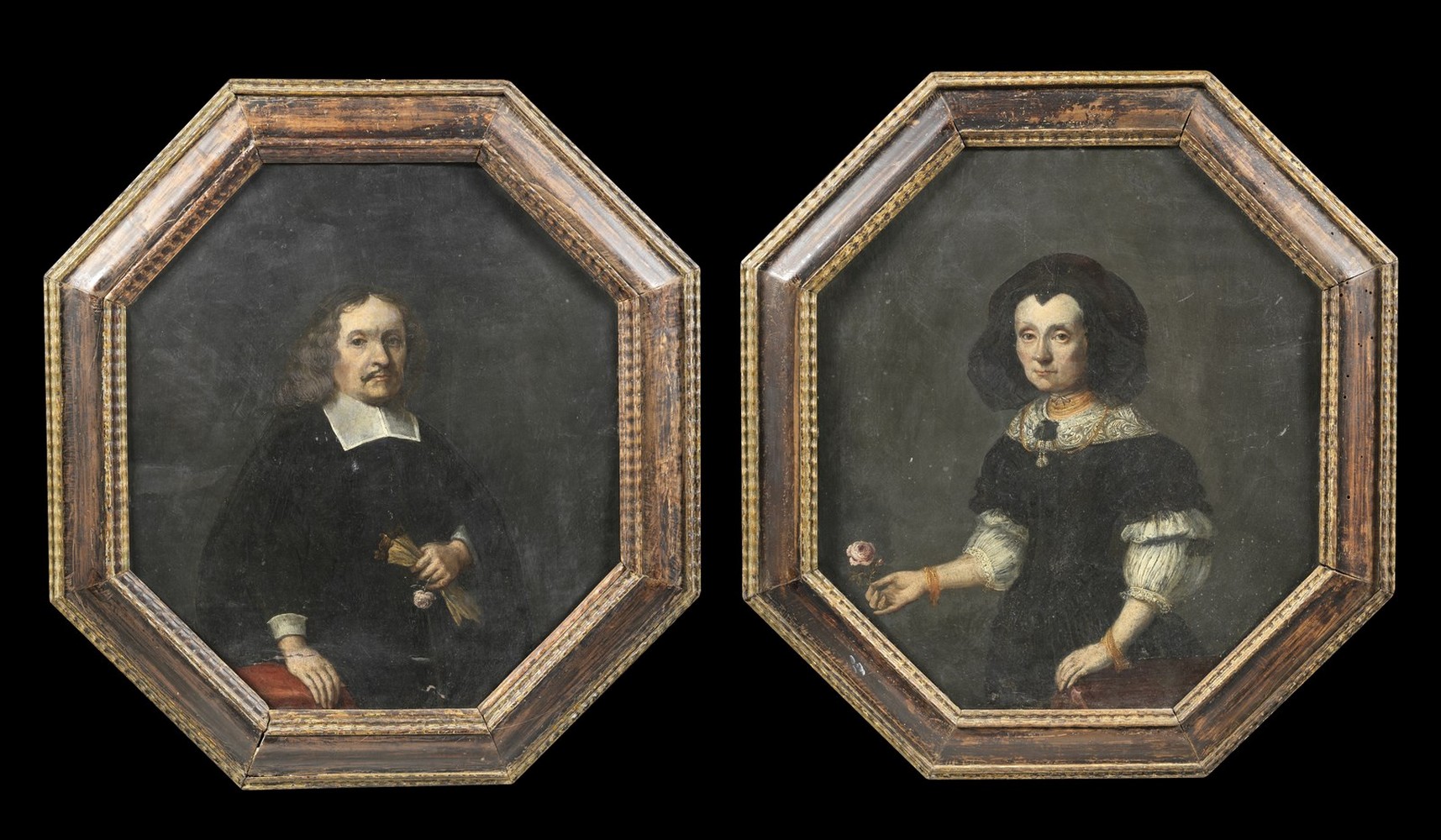 Coppia di dipinti raffiguranti ritratto di gentiluomo e ritratto di gentildonna