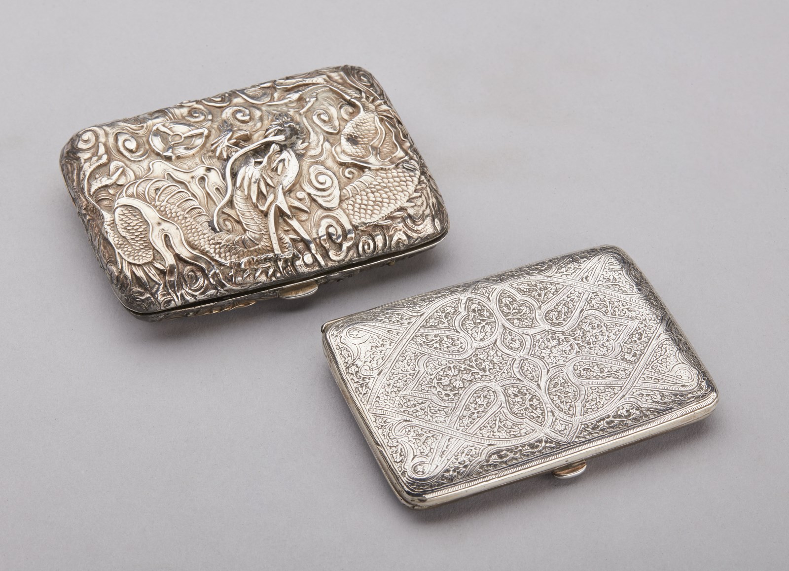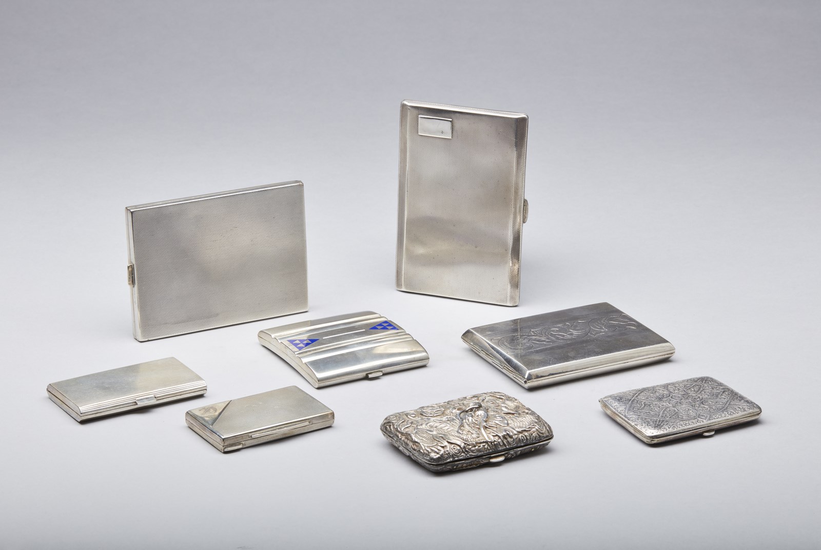 Lotto composto da 8 contenitori e portasigarette in argento