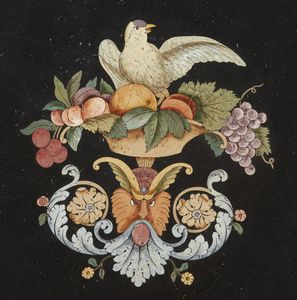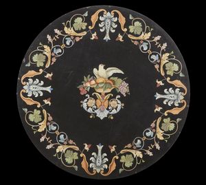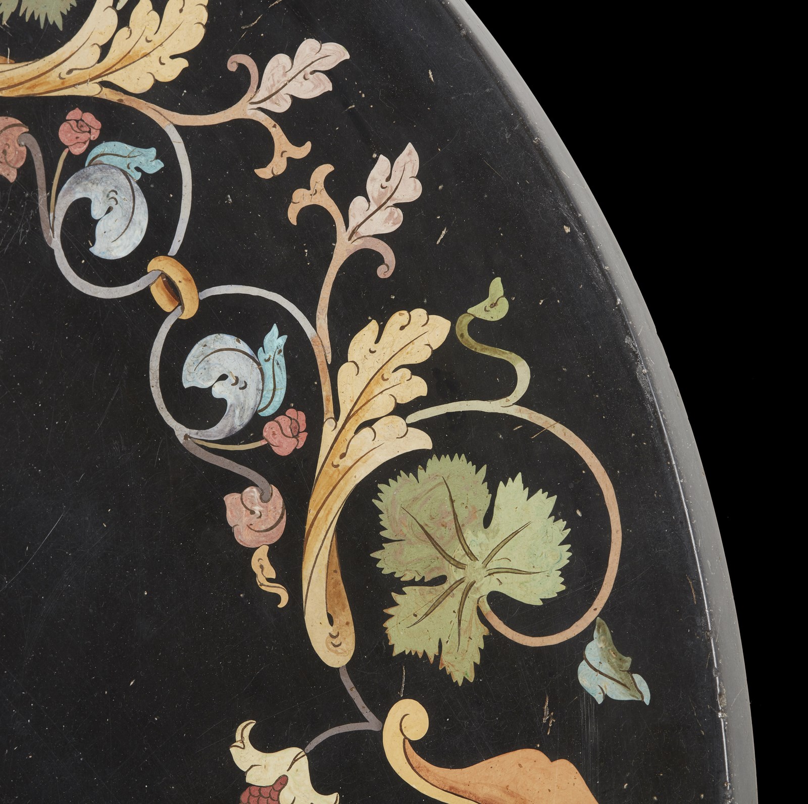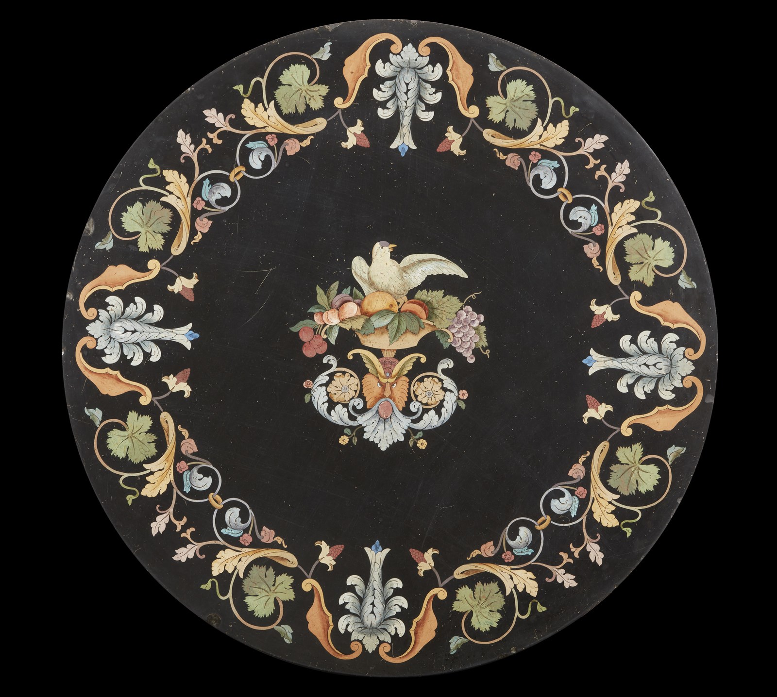 Piano tondo in scagliola con decorazioni fitomorfe e a grottesche