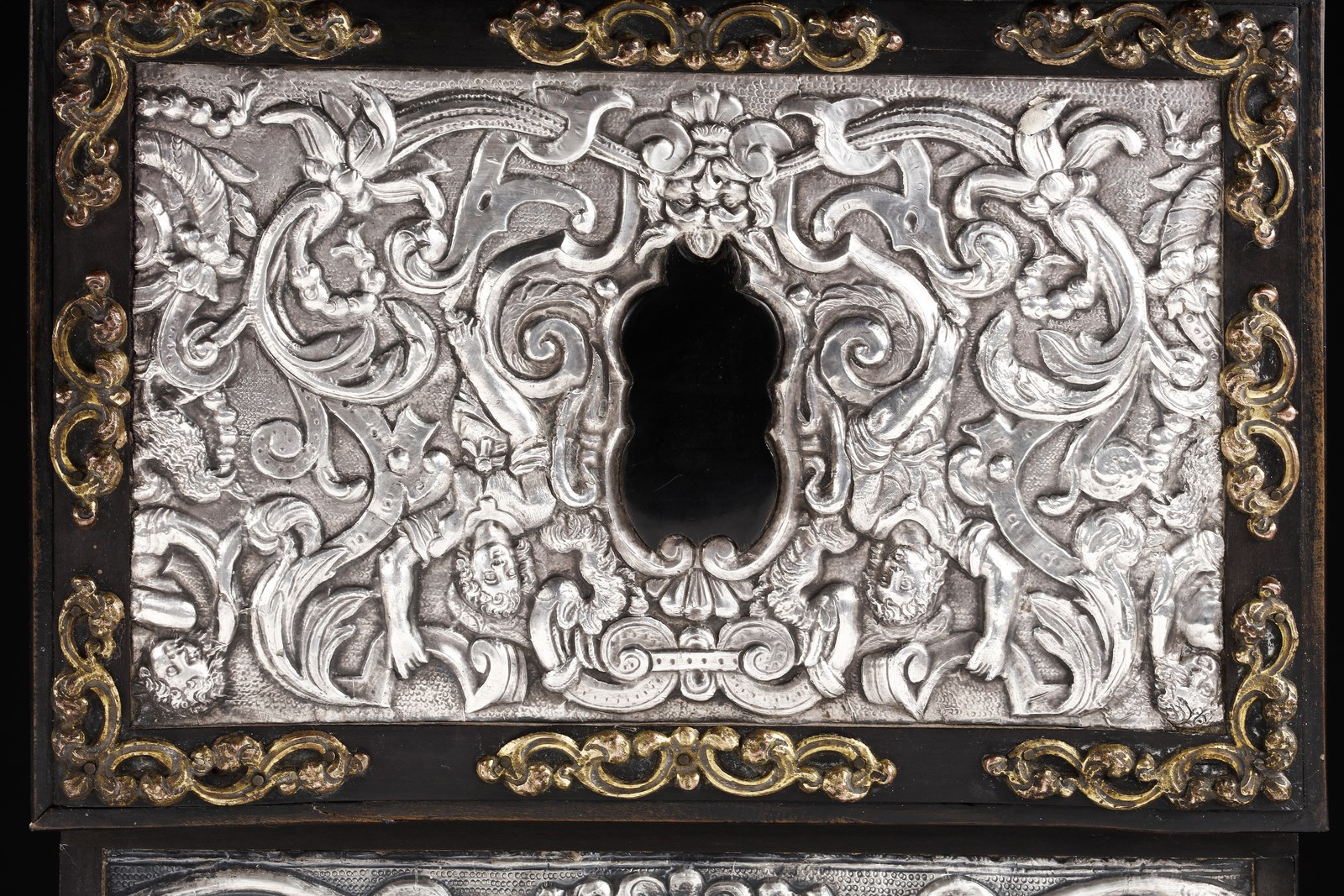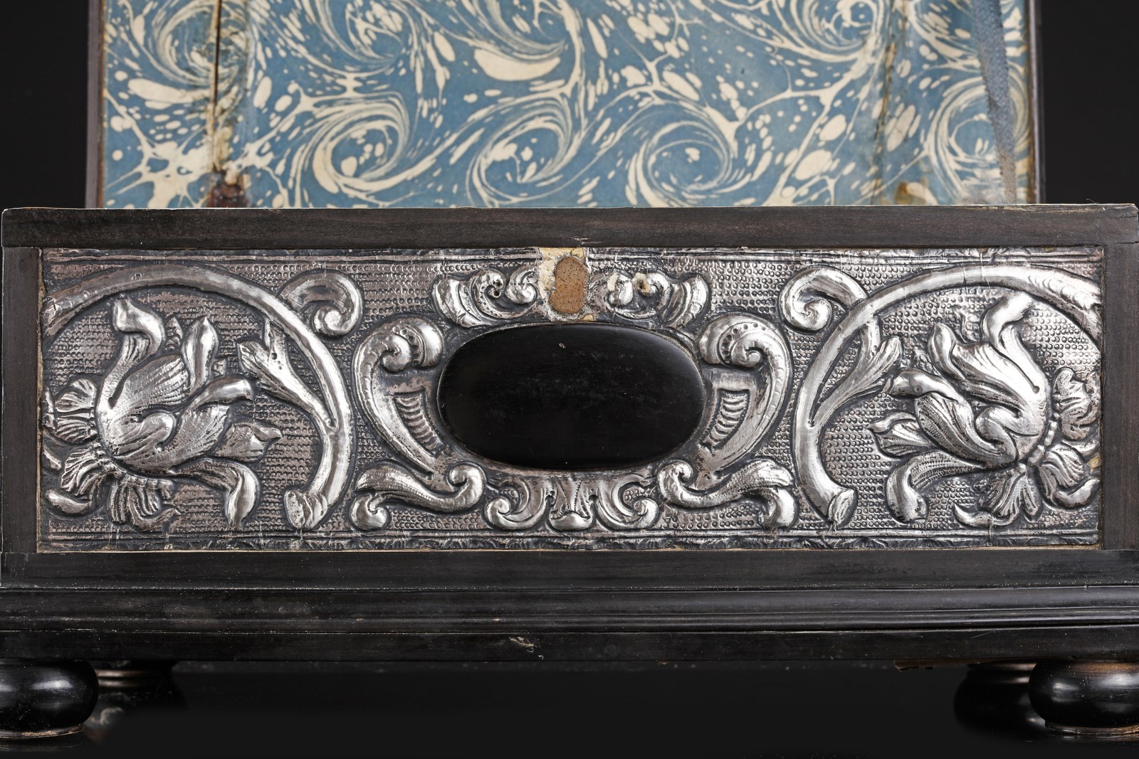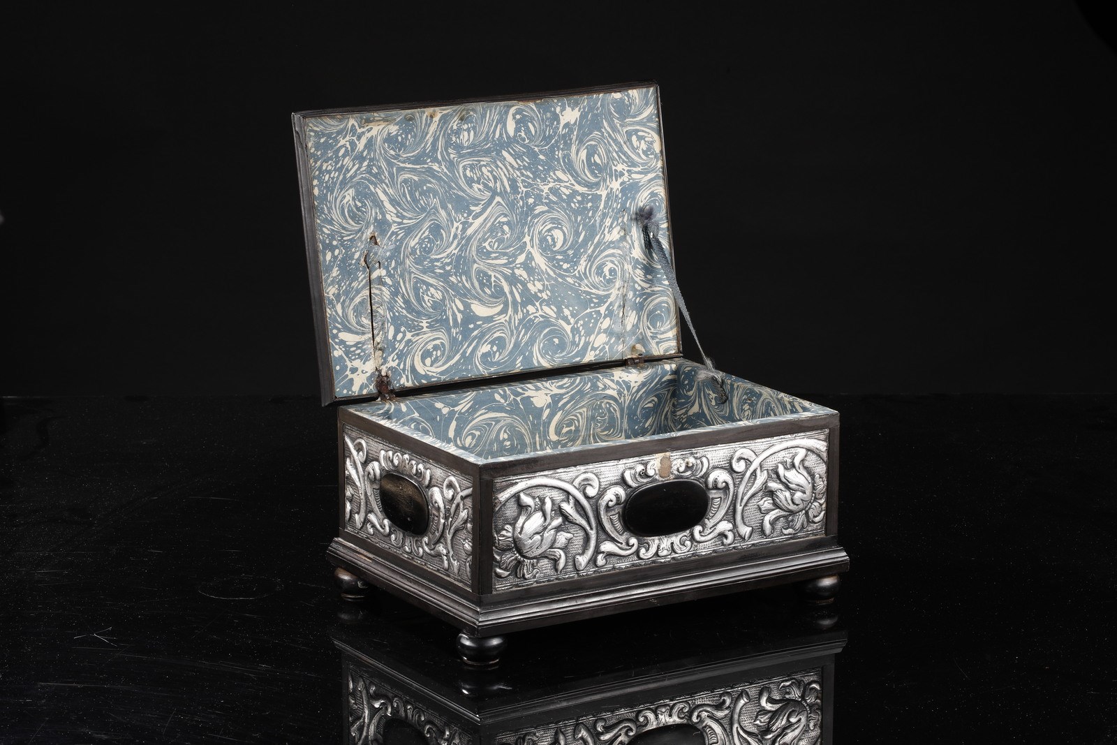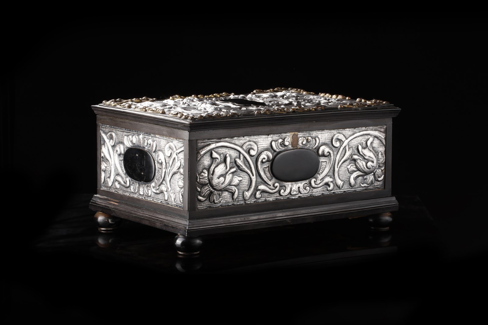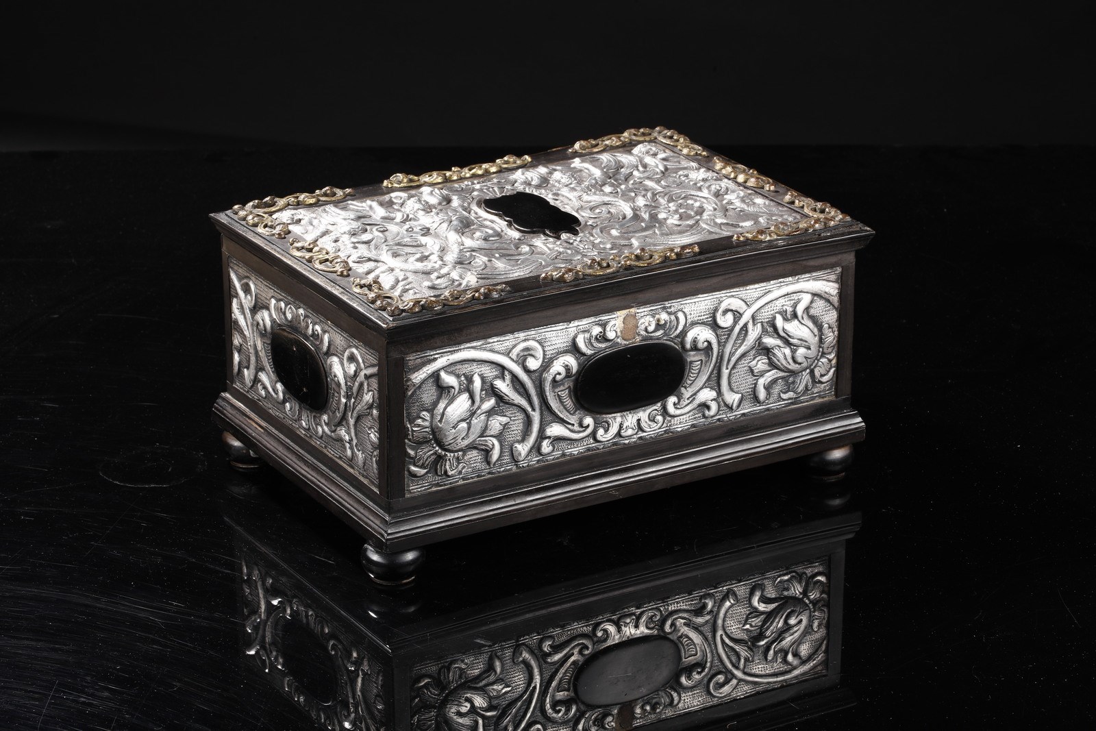 Scrigno in legno ebanizzato e lamina d'argento decorata a motivi di racemi flore [..]