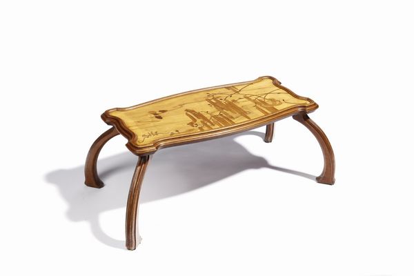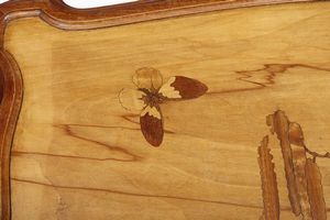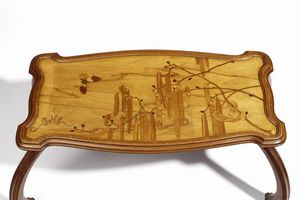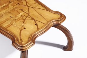 Tavolino da thè in legno nostrano, plateau sagomato e molurato, decoro marquete' [..]