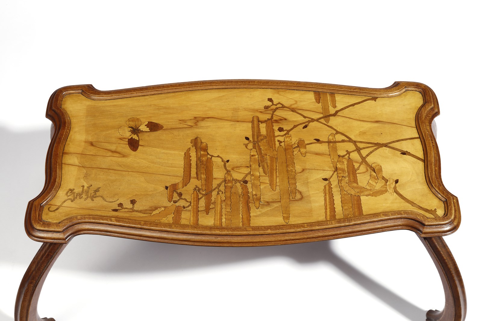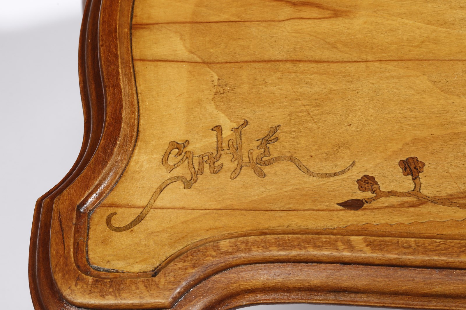 Firma ad intarsio stilizzata Gallé. Epoca 1920 circa