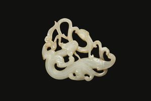 FIBBIA, CINA, DINASTIA MING, SEC. XVI in giada raffigurante Fenice. Alt.cm 7 明 十六世纪 [..]