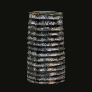 BRACCIALE, CINA, DINASTIA MING SEC. XV-XVI in giada verde spinacio di forma conica scanalata. Alt.cm 21 明 [..]