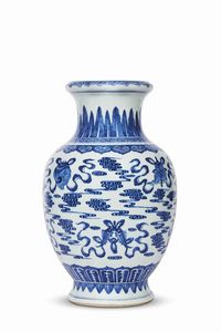 VASO, CINA, DINASTIA QING FINE SEC. XIX di forma ovoidale, in porcellana bianco-blu decorato con “eight [..]