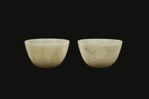 COPPIA DI CIOTOLE, CINA, DINASTIA QING SEC. XIX in giada verde celadon, marchio Qianlong incusso sotto la base. [..]
