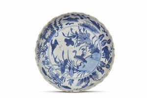 PIATTO, CINA, DINASTIA MING, SEC. XVII in porcellana, raffigurante paesaggio lacustre con anatre, rene e fiori. [..]