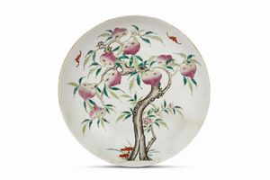 PIATTO, CINA, DINASTIA QING, MARCHIO DEL PERIODO GUANGXU (1875-1908) in porcellana policroma famiglia rosa, decorato [..]