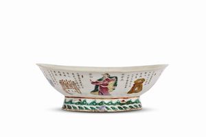 ALZATINA, CINA, DINASTIA QING, SEC. XIX-XX in porcellana policroma di forma Zupan decorato con personaggi di Wushaungpu, [..]