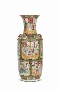 VASO, CINA DINASTIA QING SEC. XIX in porcellana Canton decorato con personaggi entro riserve floreali. Alt.cm [..]