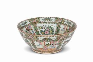 CIOTOLA, CINA, DINASTIA QING, SEC.XIX in porcellana Canton decorata con personaggi entro riserve. Diam.cm 34 [..]