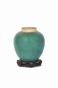 VASO, CINA, DINASTIA QING, SEC. XIX di forma ovoidale, in porcellana monocroma verde azzurro. Alt.cm 17,5 清 [..]