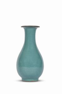 VASO, CINA, DINASTIA QING, SEC. XVIII in porcellana monocroma color verde, forma a bottiglia. Alt.cm 28 清 [..]