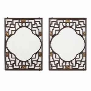 COPPIA DI SPECCHIERE, CINA SEC. XX con struttura in legno geometrico. Dime.cm 67 x 48 中国 二十世纪木框镶镜一对 [..]