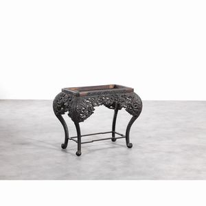 TAVOLINO , CINA, DINASTIA QING, SEC. XIX-XX in legno lavorato intagliato con draghi che volano fra le nuvole。 [..]