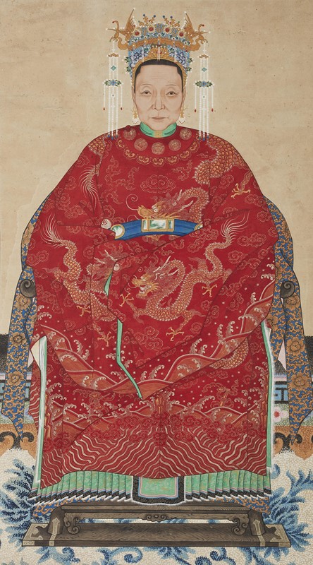 清 十八至十九世纪 诰命夫人像 设色纸本