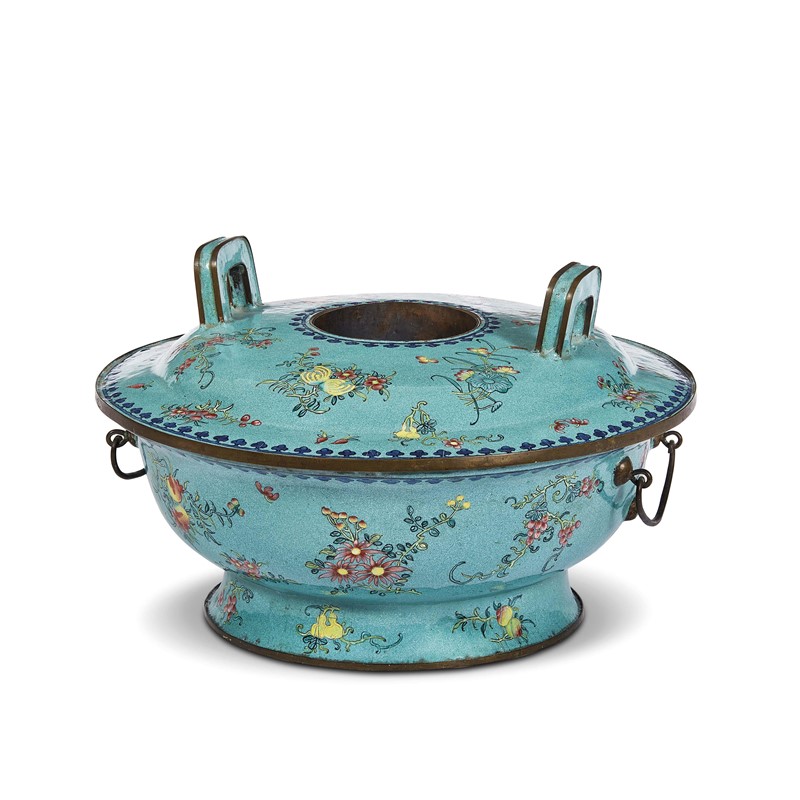晚清 十九至二十世纪 松石绿珐琅花卉纹温锅