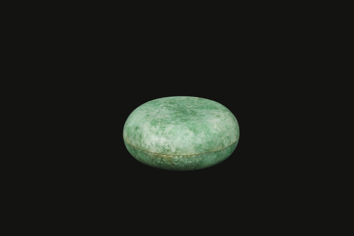 in giadeite verde-bianco di forma rotonda .