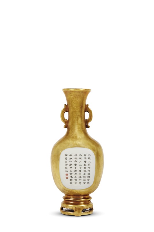 中国 民国 1912至1949 鎏金开光诗词纹双耳壁瓶 乾隆底款