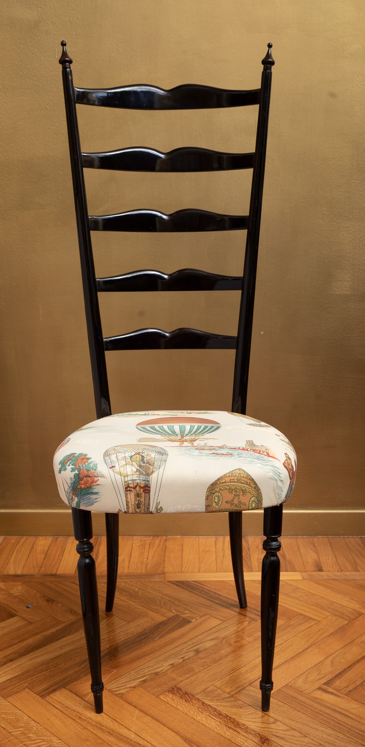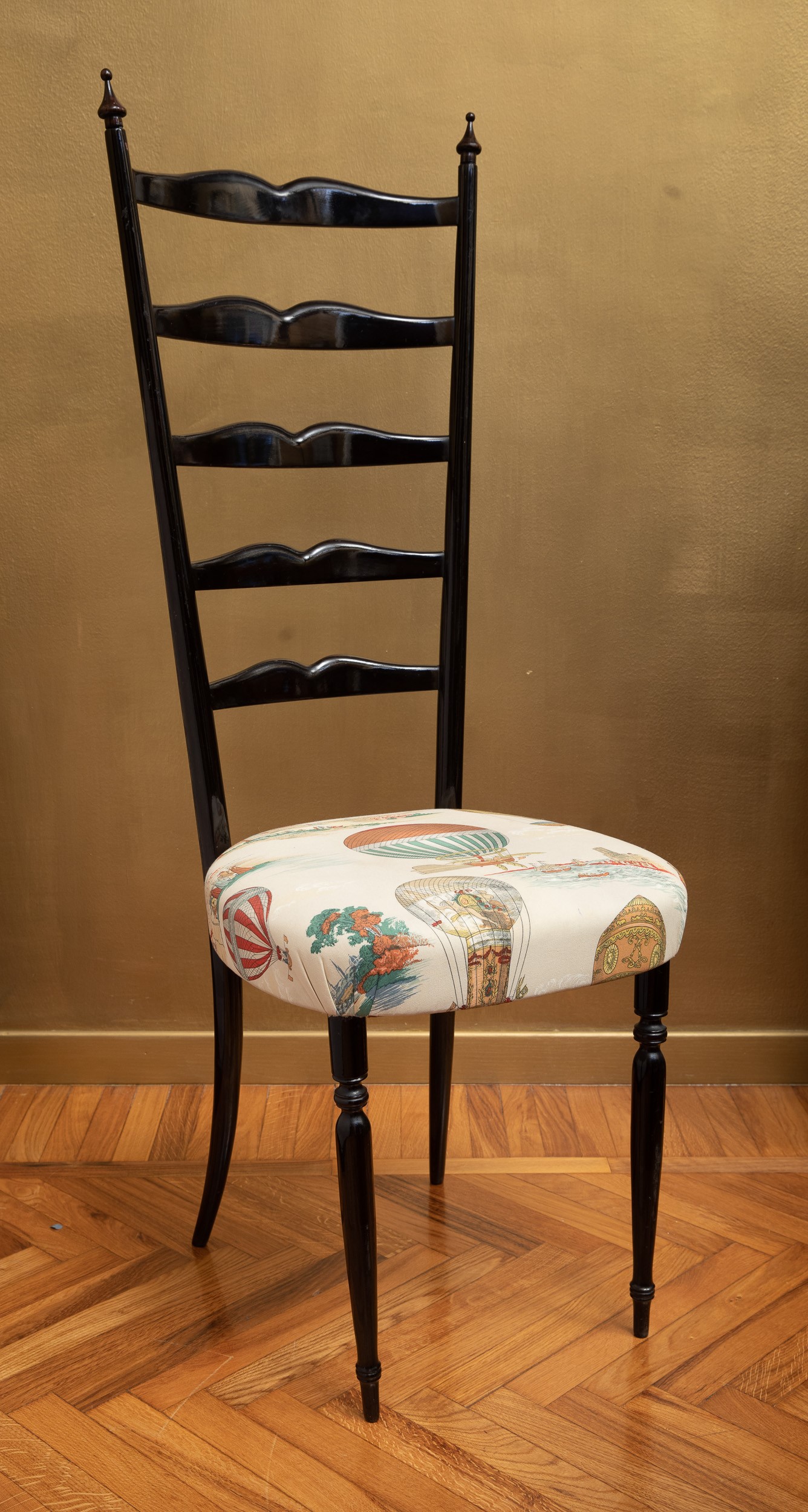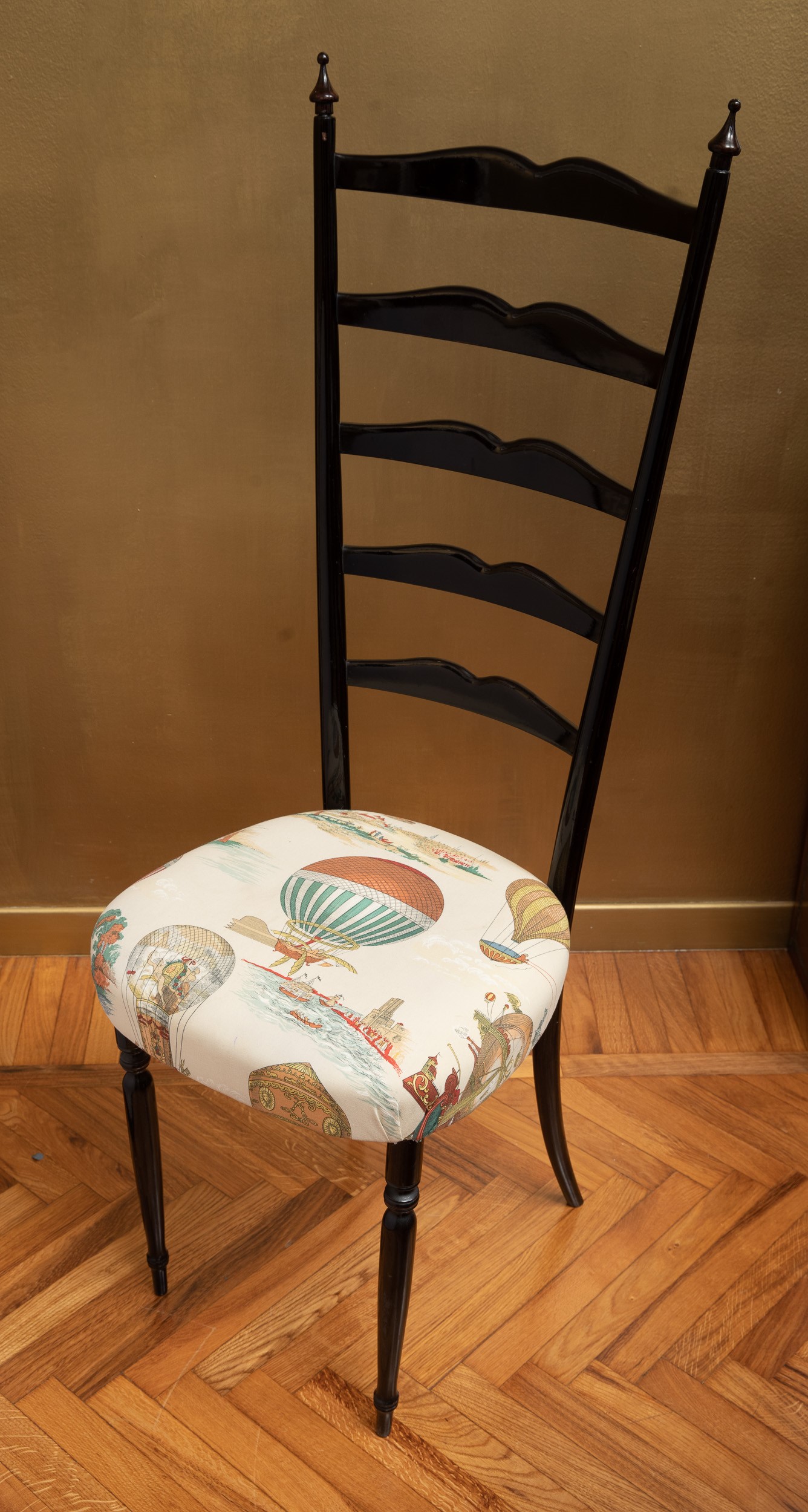Coppia di sedie stile chiavarine rivestite con tessuto Pierre Frey