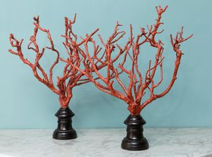 Coppia di rami in legno ad imitazione del corallo. XX secolo