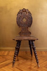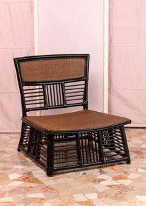 Sedia in legno laccato con seduta e schienale in rafia. Giappone, XX secolo