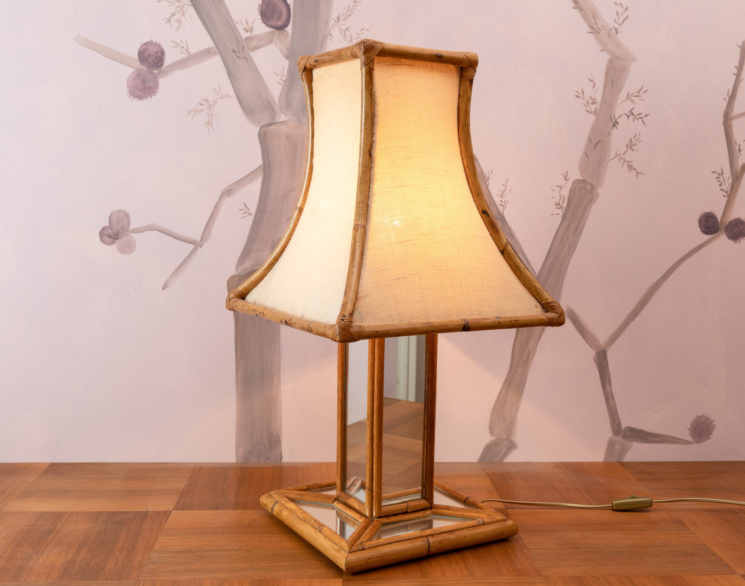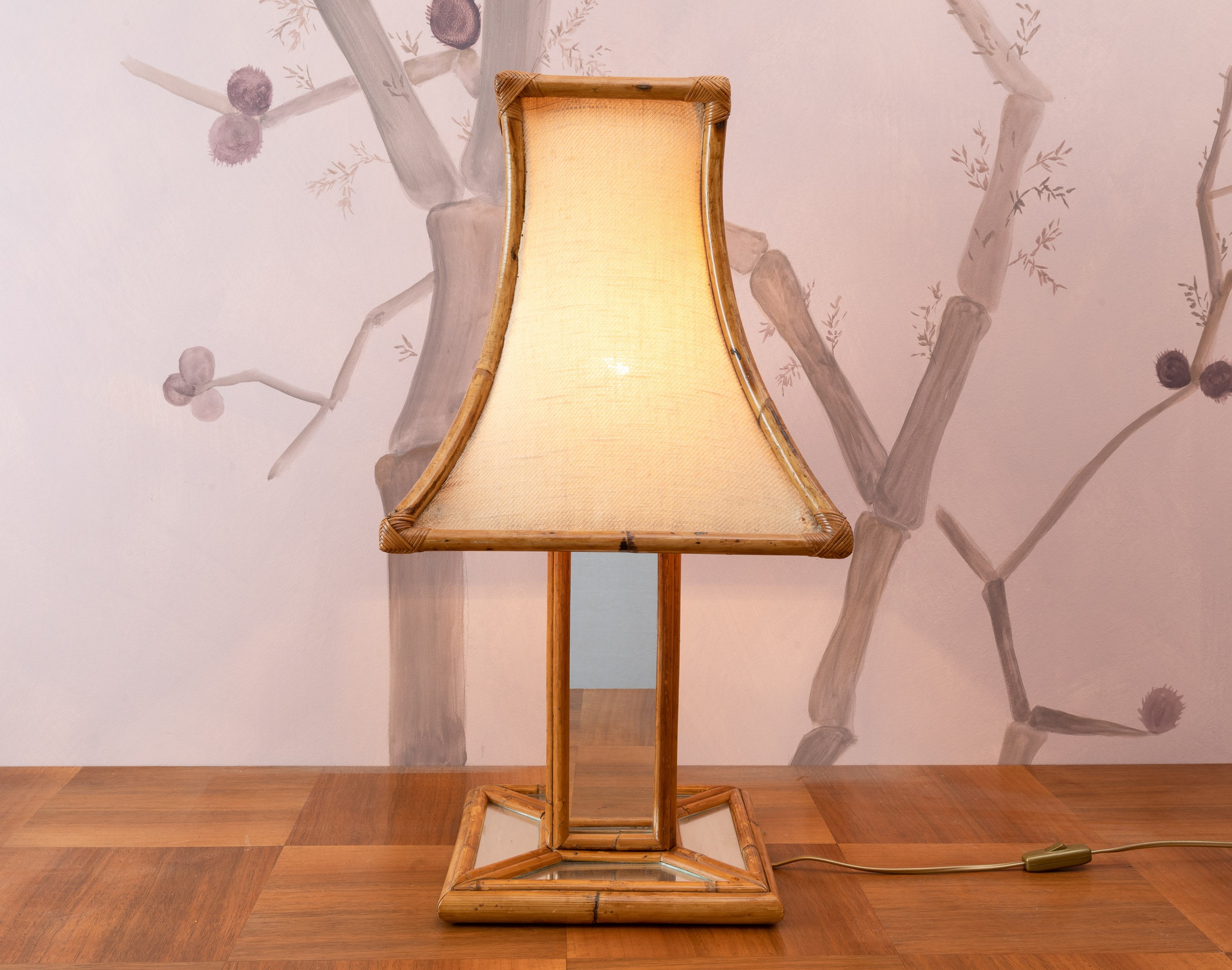 Lampada da tavolo in bamboo e juta. XX secolo