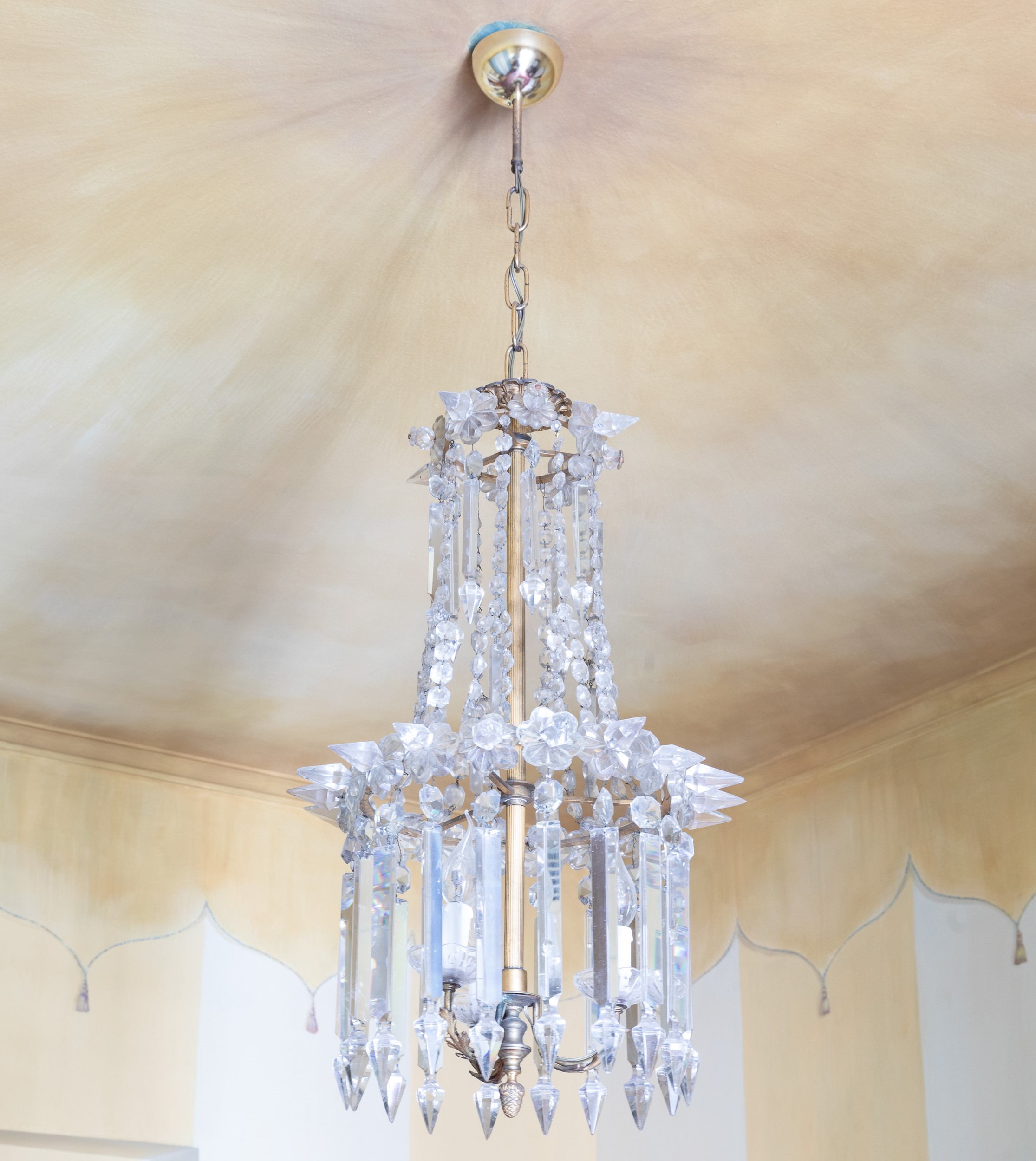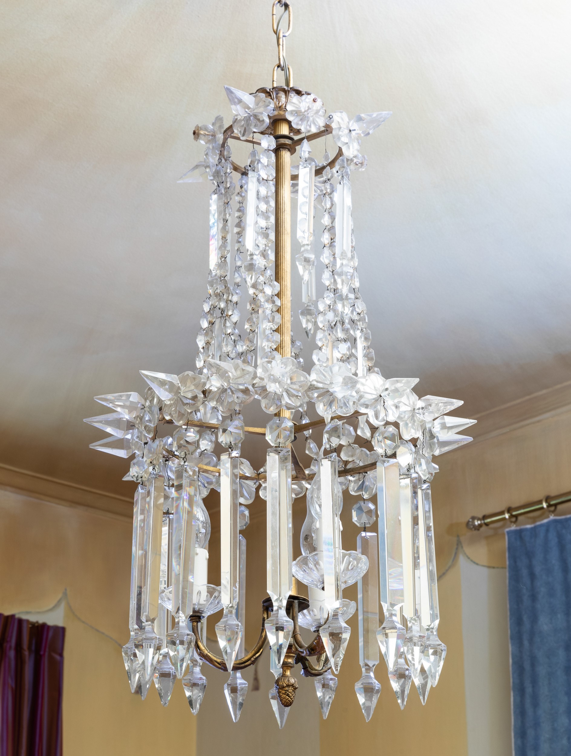 Lampadario in bronzo dorato e pendenti in vetro. XIX secolo
