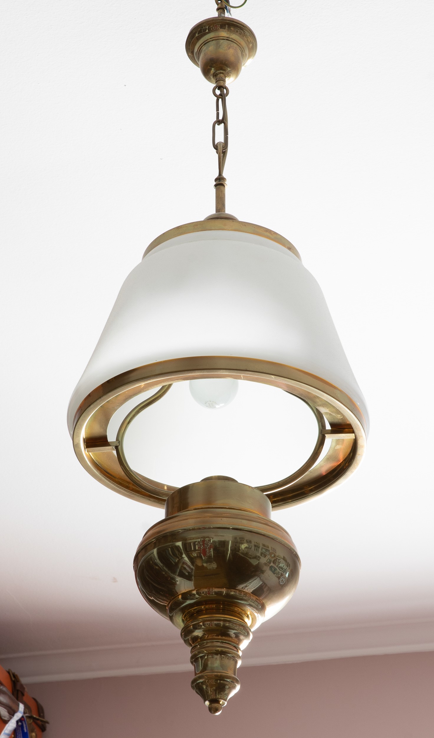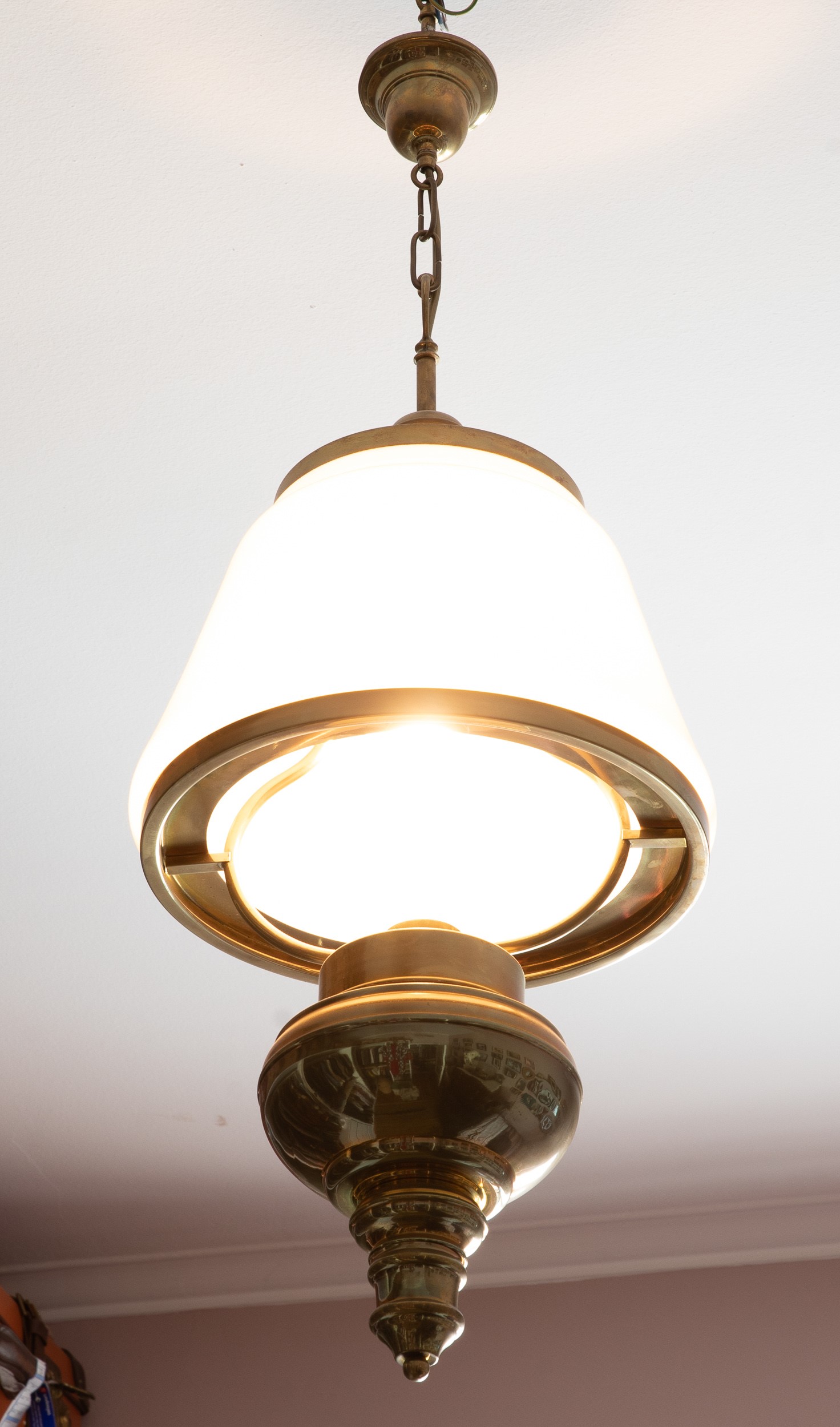 Lampadario in ottone e vetro. XX secolo
