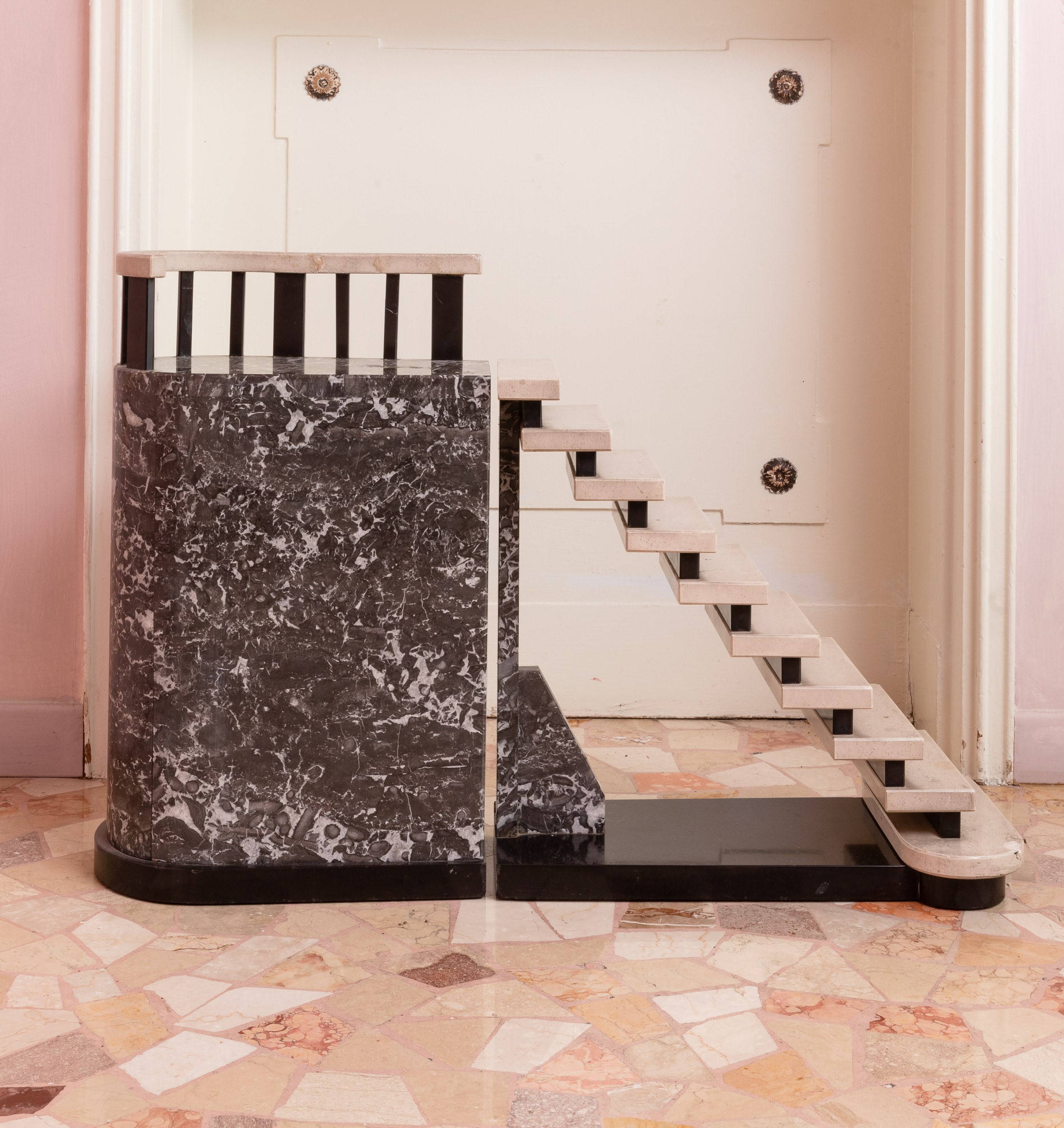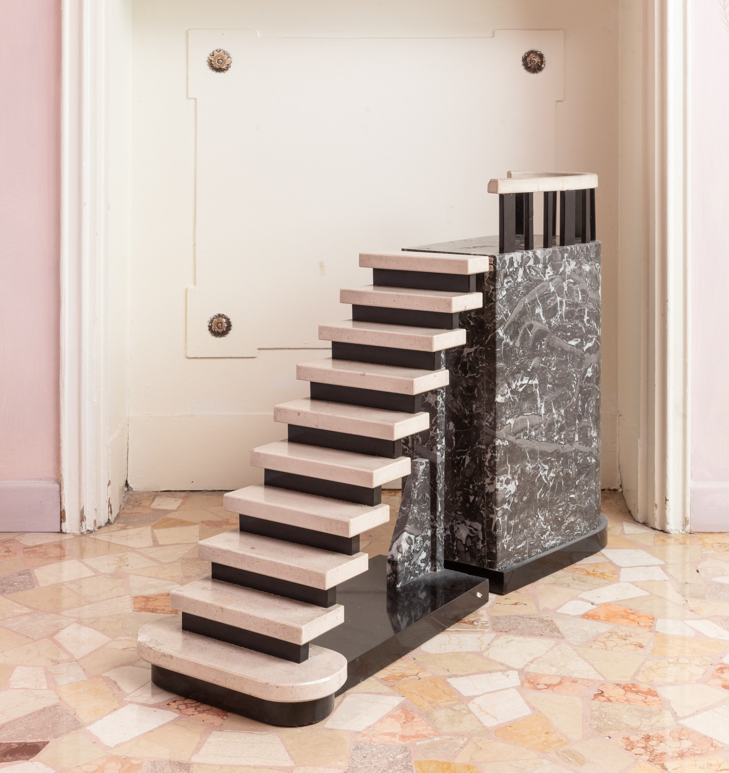 Modellino architettonico in marmi vari. XX secolo