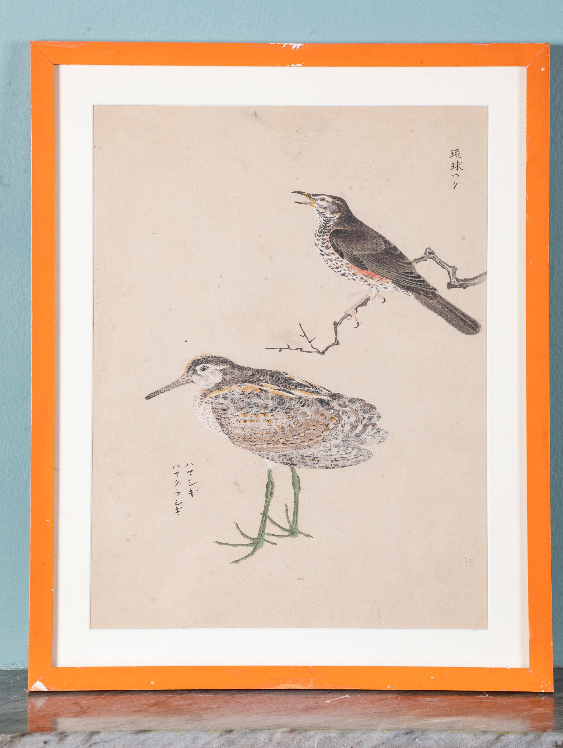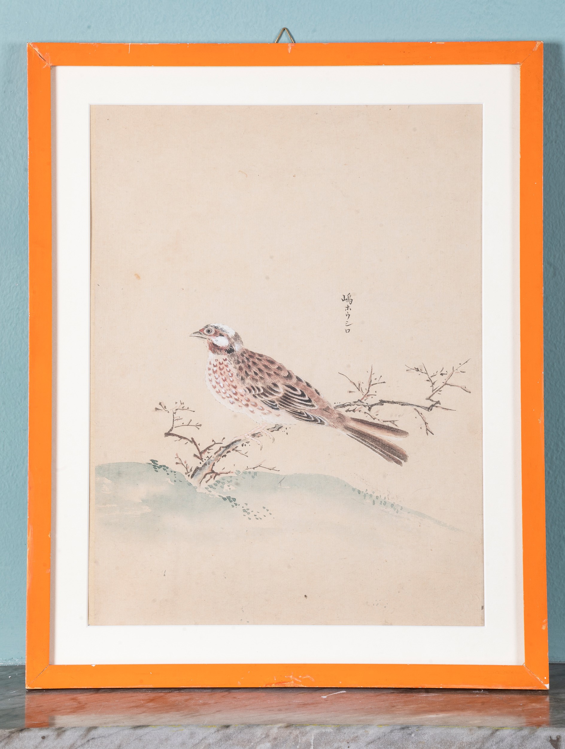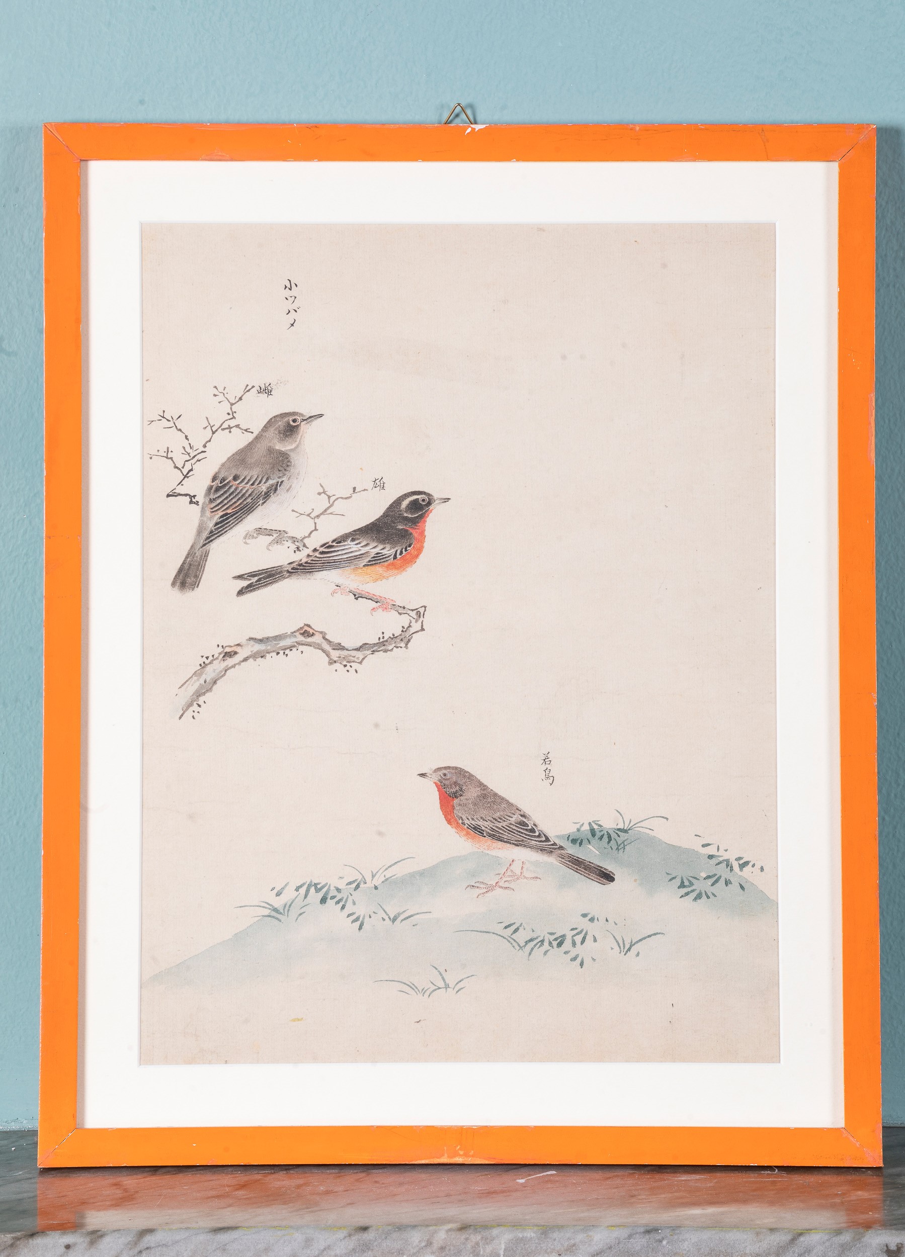 Tre stampe acquerellate su carta a tema ornitologico con iscrizioni. Giappone, XX [..]