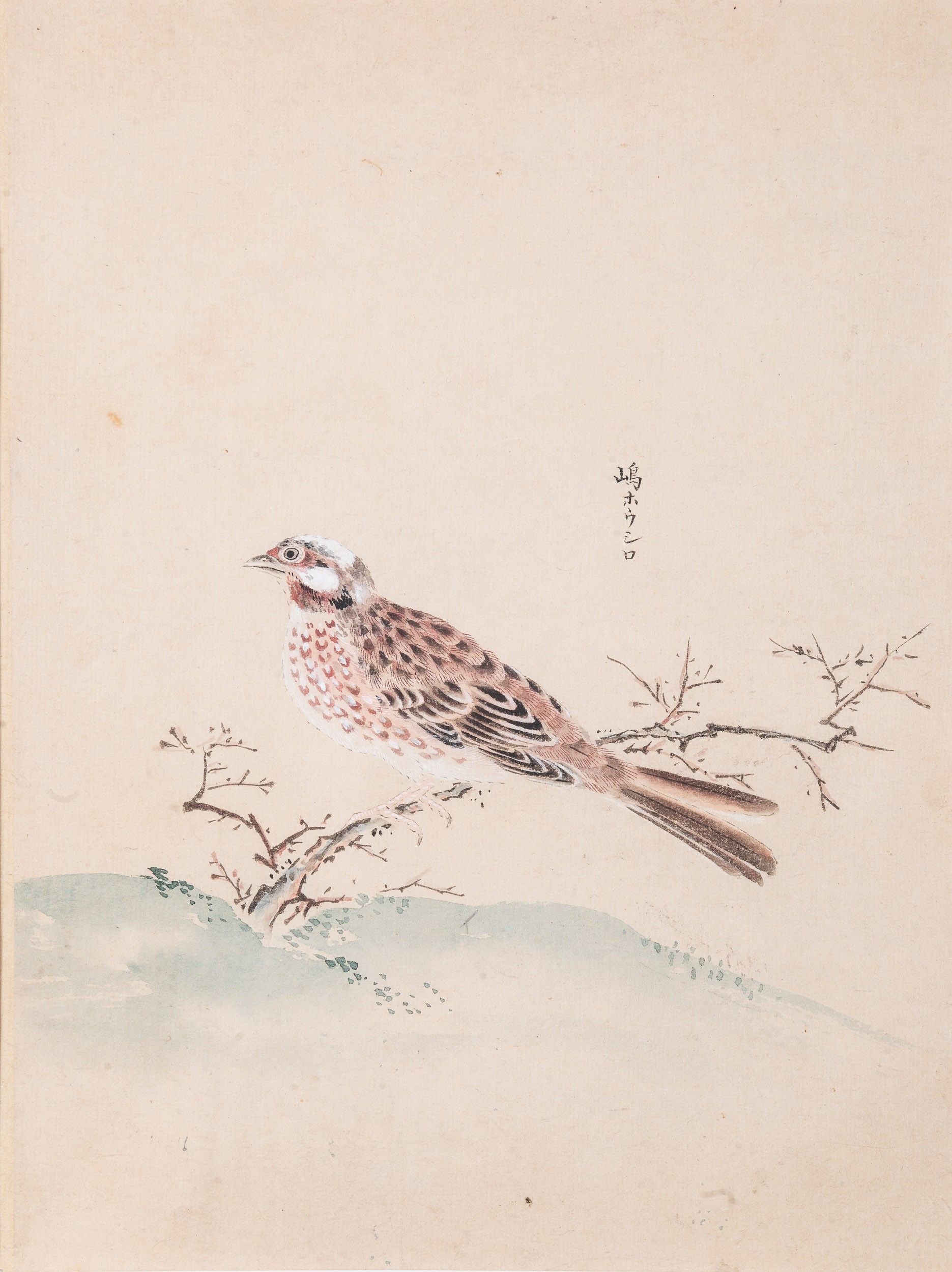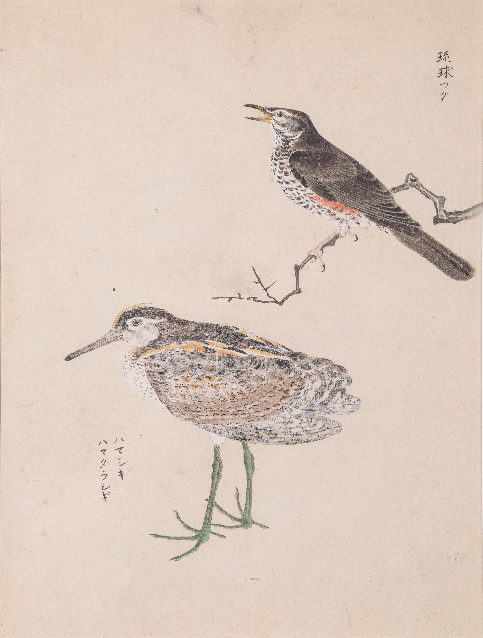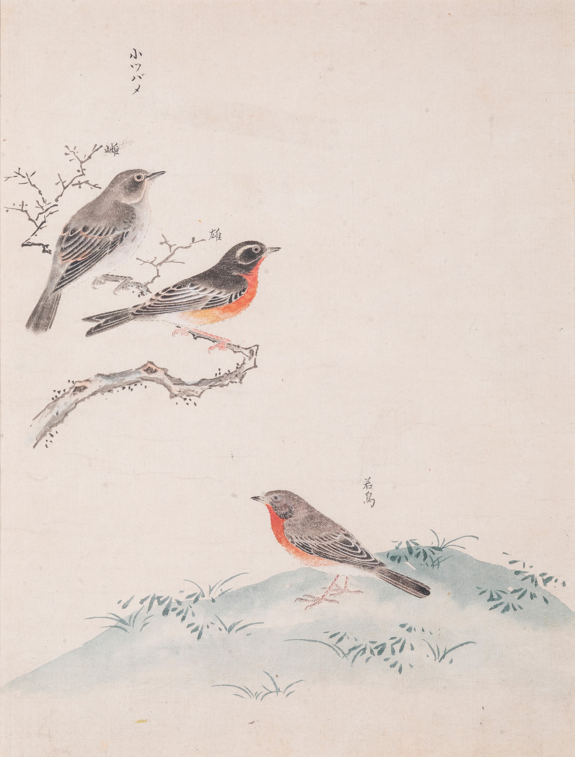 Tre stampe acquerellate su carta a tema ornitologico con iscrizioni. Giappone, XX [..]