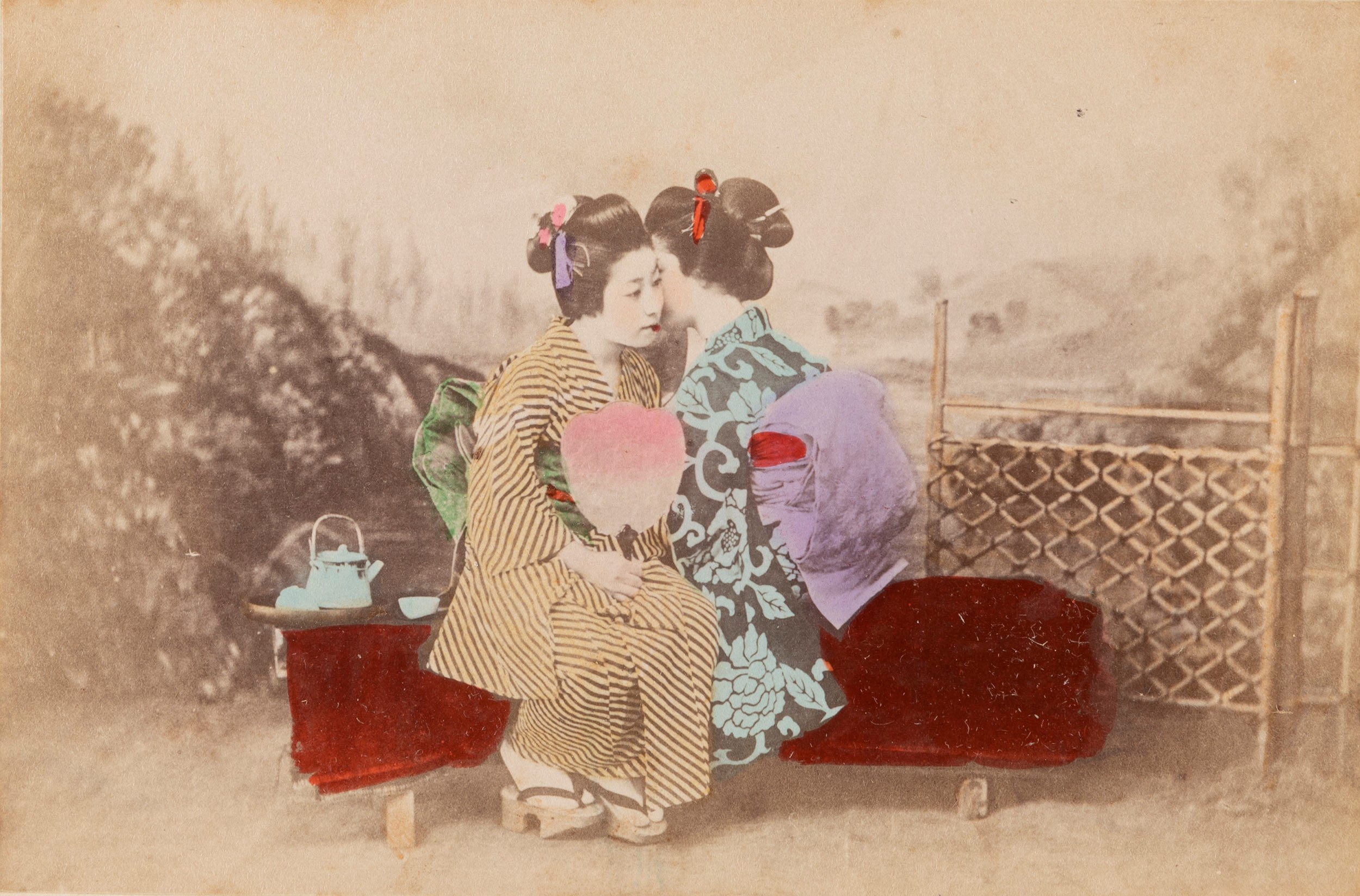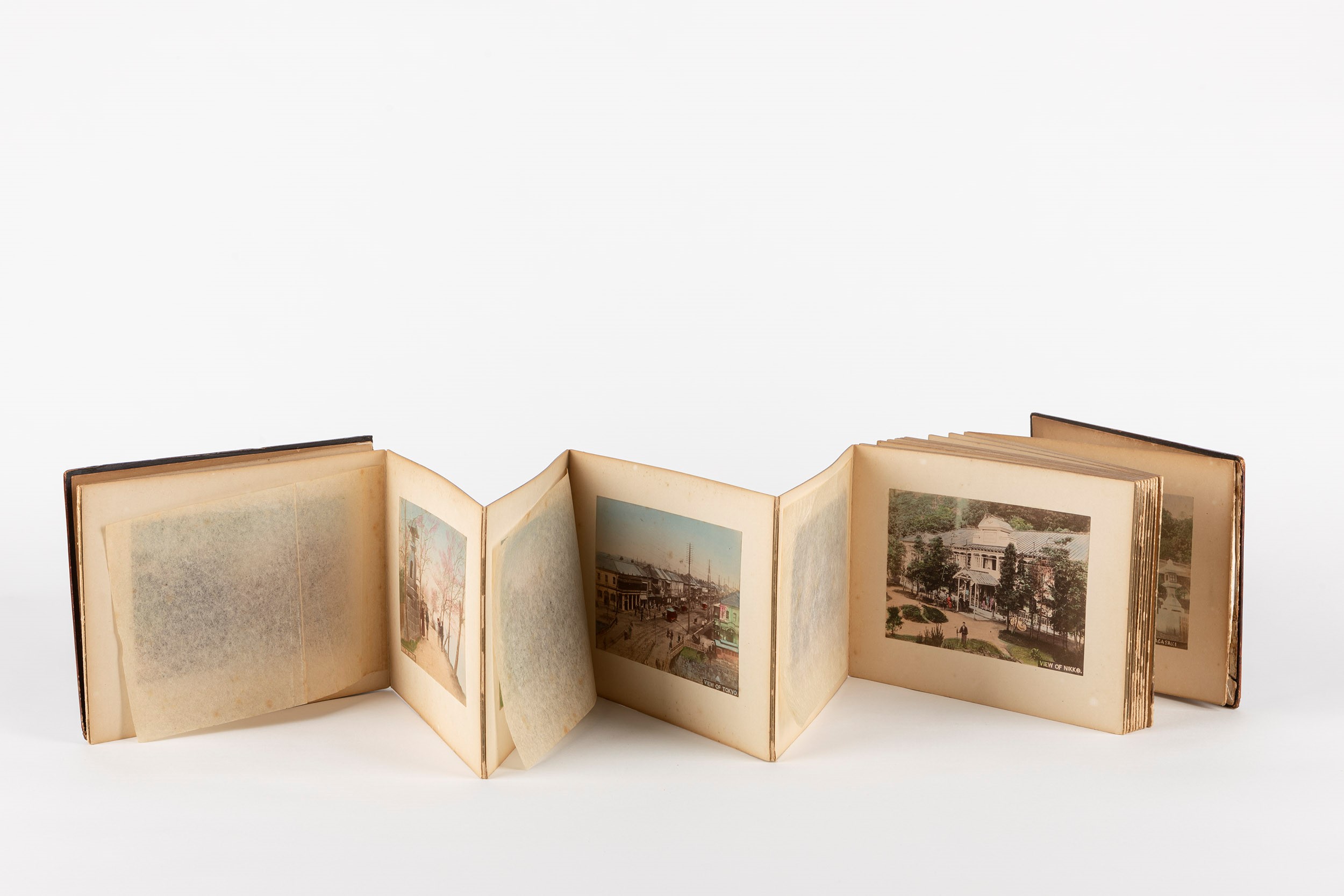 50 stampe all'albumina colorate a mano e montate fronte-retro su cartoncino originale, album con ril, cm 9 x 13,5 ca. ciascuna albumina ; cm 15 x 20 x 5 (album)