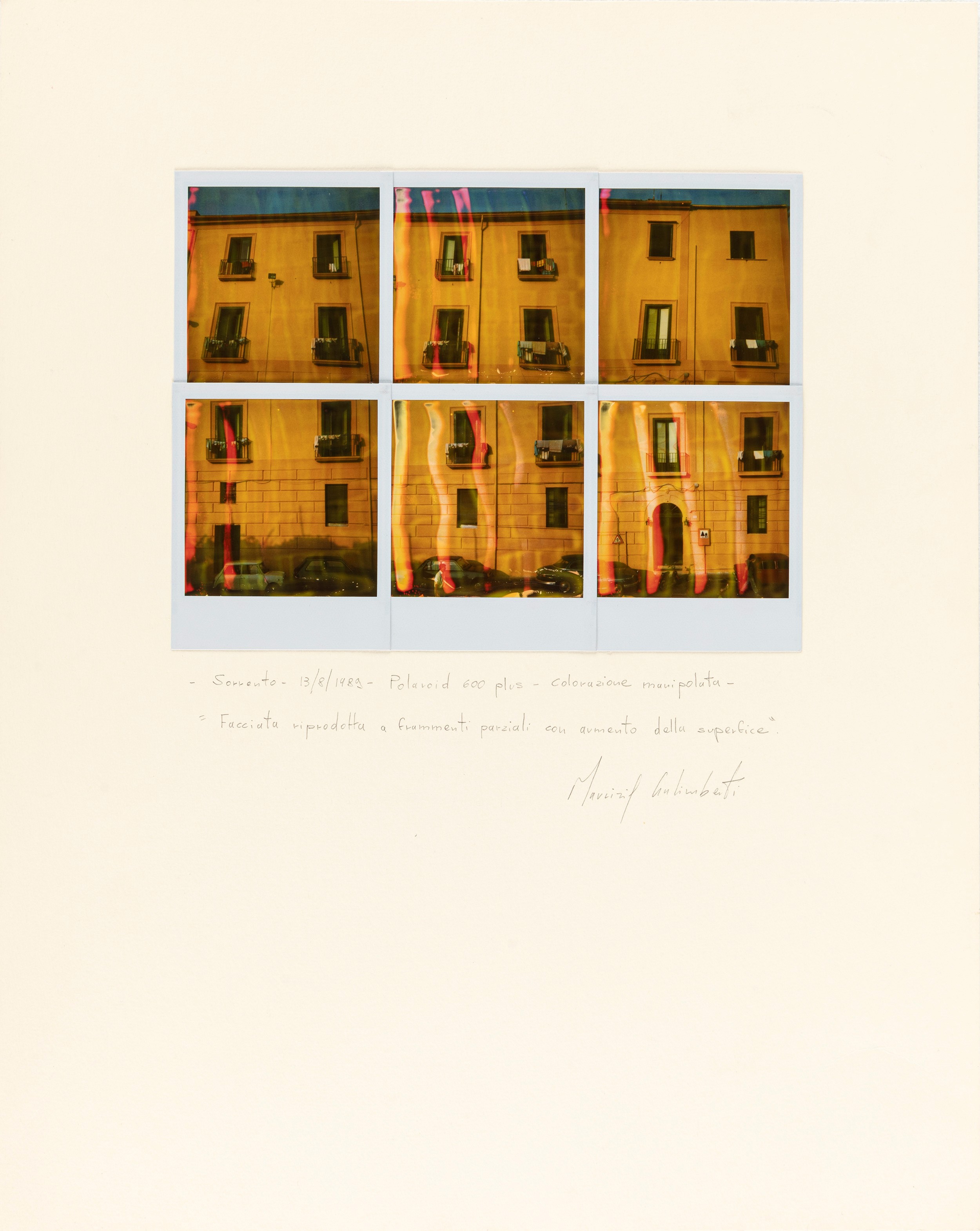 Sei polaroid montate a mosaico, applicate a cartoncino originale, cm 19,5 x 25,5 (cm 49,8 x 40 immagine)