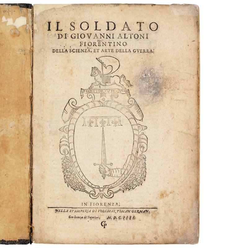 (Fortificazioni - Storia navale - Illustrati 600) ALTONI, Giovanni. Il soldato di Giouanni Altoni fiorentino della scienza, et arte della guerra. In Fiorenza, nella stamperia di Volcmar Timan german, 1604.
