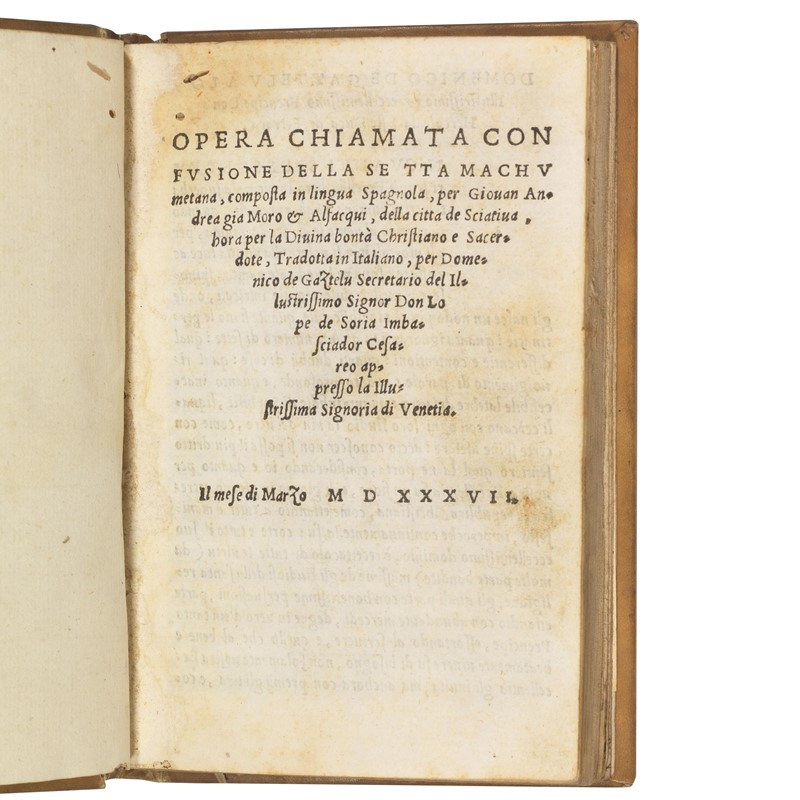 (Islam) Andrés, Juan. Opera chiamata confusione della setta machumetana. Il mese di Marzo 1537 (Stampata in Spagna ne la città di Seuiglia [i.e. Venezia], 1537. Il mese di Aprile.)