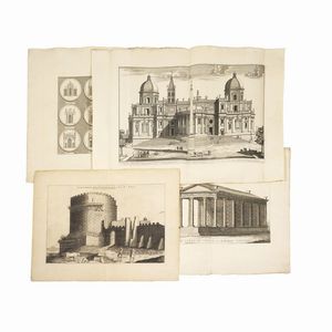 (Roma) Lotto di 13 incisioni calcografiche di vario formato a carattere architettonico, [..]