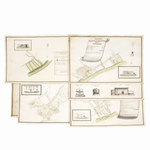 (Toscana) Lotto comprendente 5 cabrei. Toscana, XVIII secolo. Insieme di 5 cabrei acquarellati a mano, tra cui: [..]