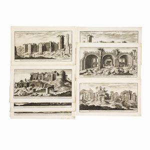 (Roma) Lotto di 7 incisioni calcografiche con vedute della Roma archeologica. [..]
