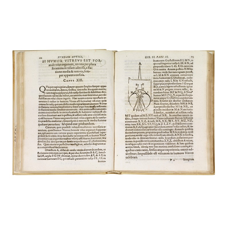 RARE FIRST EDITION OF THIS PIONEERING TREATY OF OPTICS. -- Modern vellum. The volume has been reassembled and has restorations on the margins of the first leaves; the title-page has a small oval restoration, the engraved plate has small restorations, some external margins are trimmed, the last leaf has a small dark spot on the verso. Detailed description and additional images upon request.