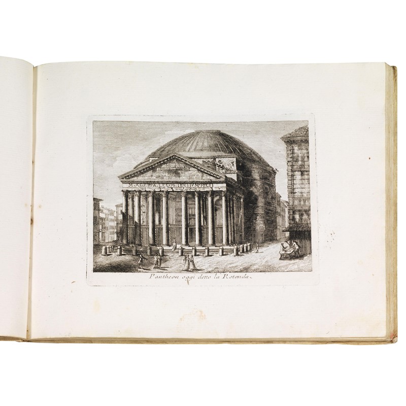 VERY RARE SERIES OF VIEWS OF ROME engraved by Innocente Alessandri (1741-1803), active in Venice in the second half of the eighteenth century. Engraved title page followed by 60 engraved plates (3 of which with shorter margins bound at the end, presumably at the time). -- Minimal traces of time, overall good fresh and genuine copy. Detailed description and additional images upon request.