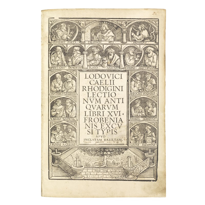 (Sapere enciclopedico - Illustrati 500) RICCHIERI, Ludovico. Lectionum antiquarum libri XVI. ([Var. B:] Basileae, apud Ioannem Frobenium, M. Martii D. XVIII 1518).